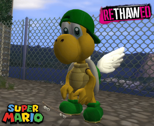 Fully customizable, you can set your own color and add a backwards hat + some animated Paratroopa wings.