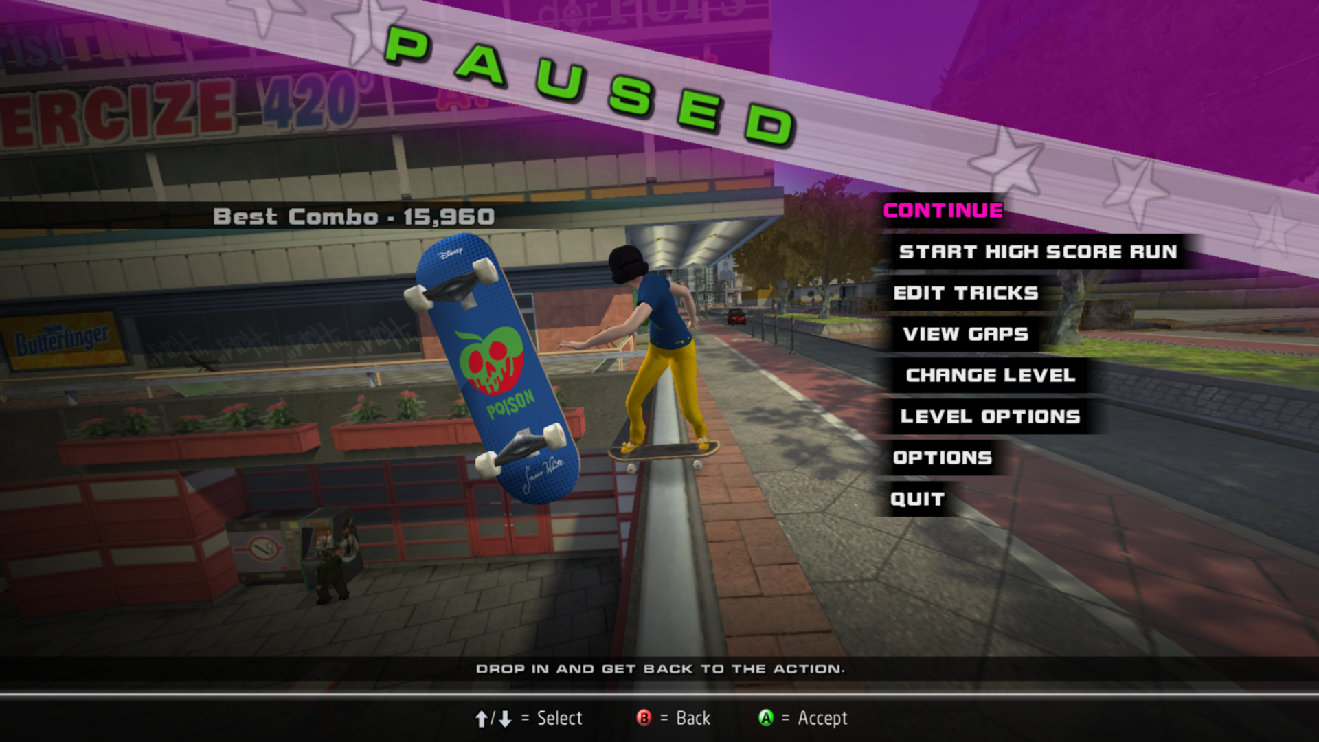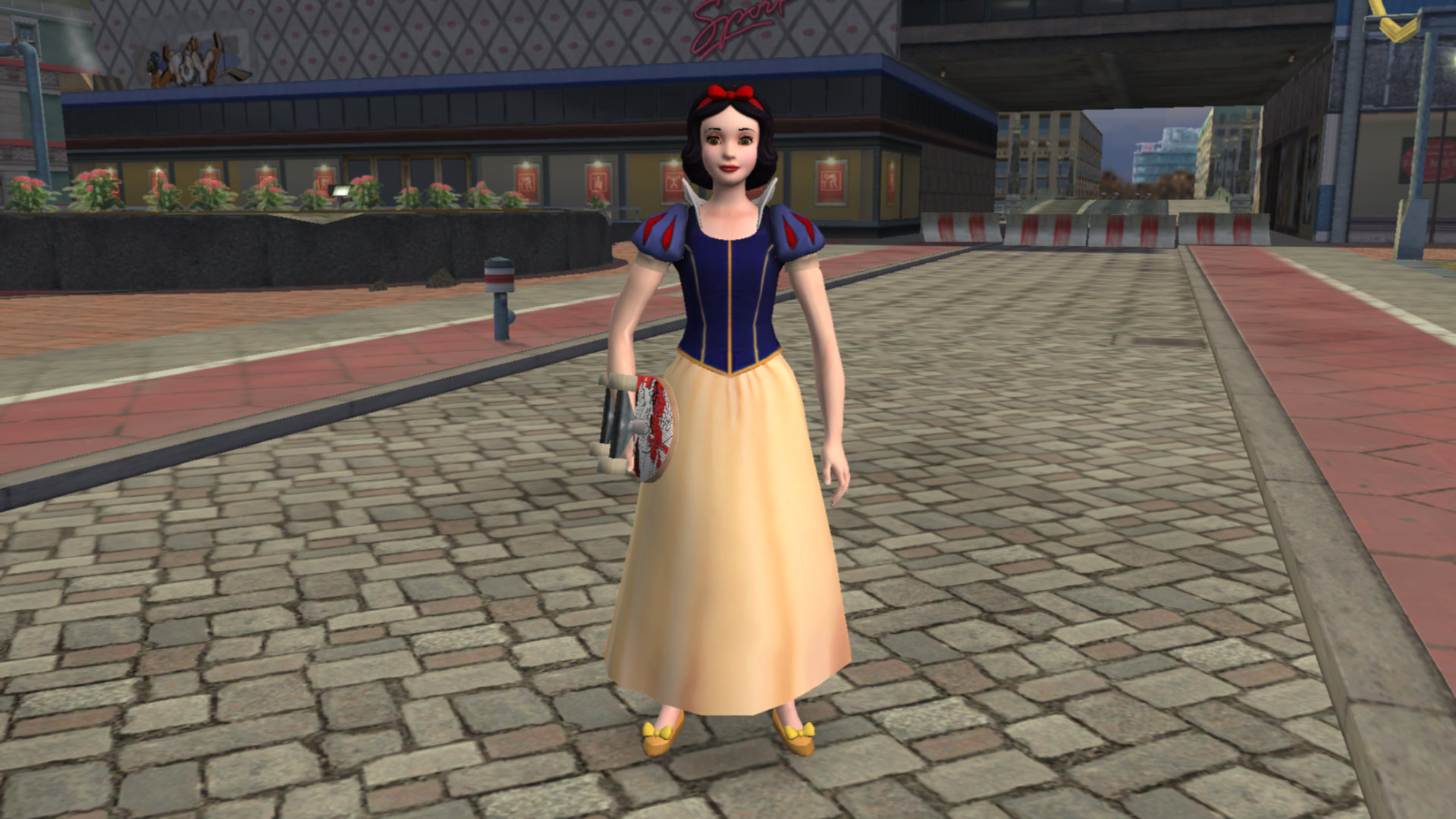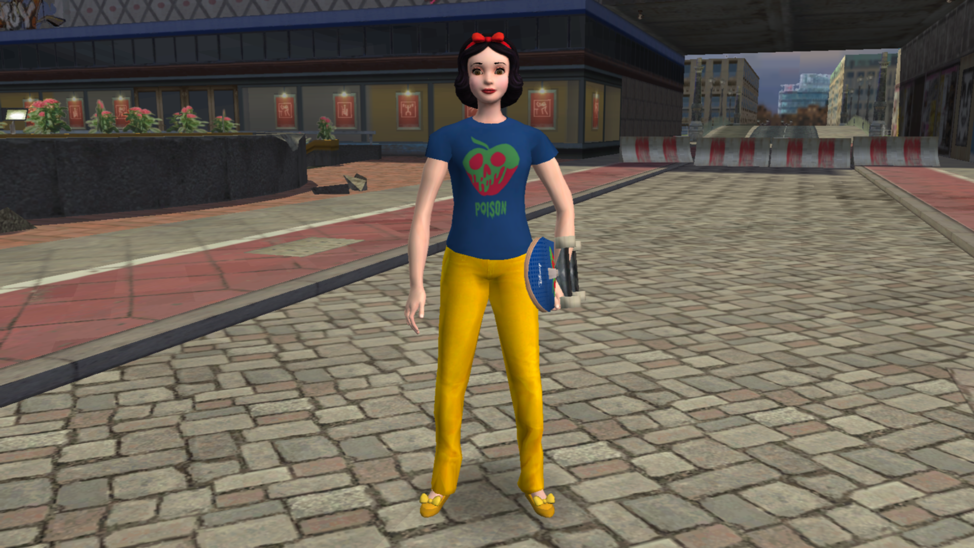How come they never had the Princesses to skate in the Disney-themed spinoff to Pro Skater? Maybe their ball gowns get in the way but meh. Here's Snow White herself, having somehow decided to take a break from her princess duties to shred her way through the local skate park.