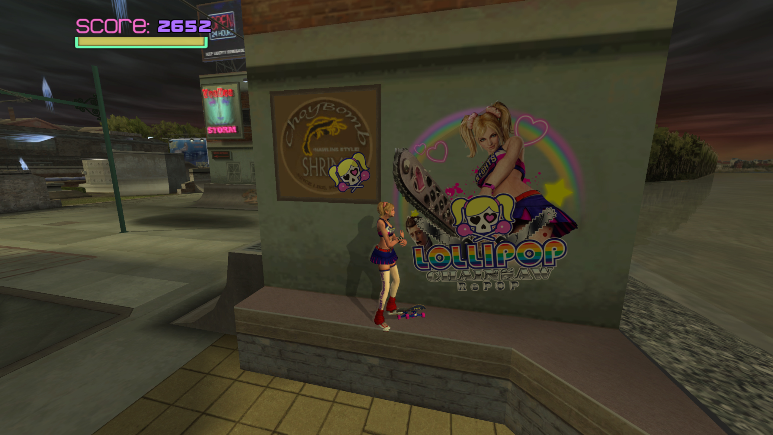 Lollipop Chainsaw deck plus two tags a sticker and a truck sticker