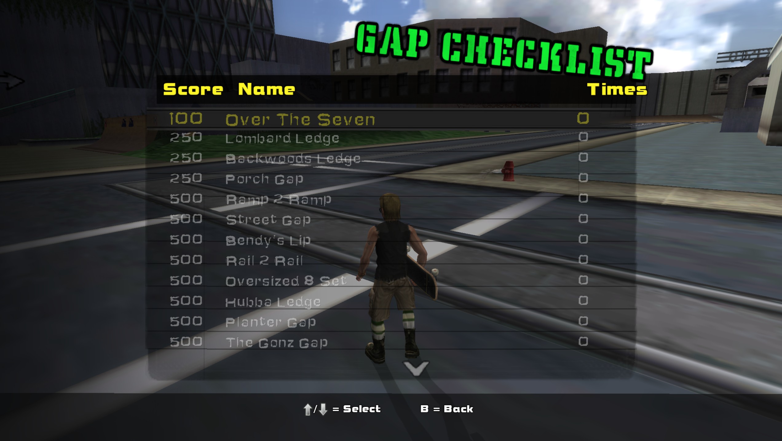 A port of Streets from Tony Hawk's Pro Skater, originally ported to THUGPro by tyler. This version of the map has been touched up with gaps, graffiti support, and more. Originally designed for THARK, a THUGPro mod, now playable in reTHAWed via custom mod support.