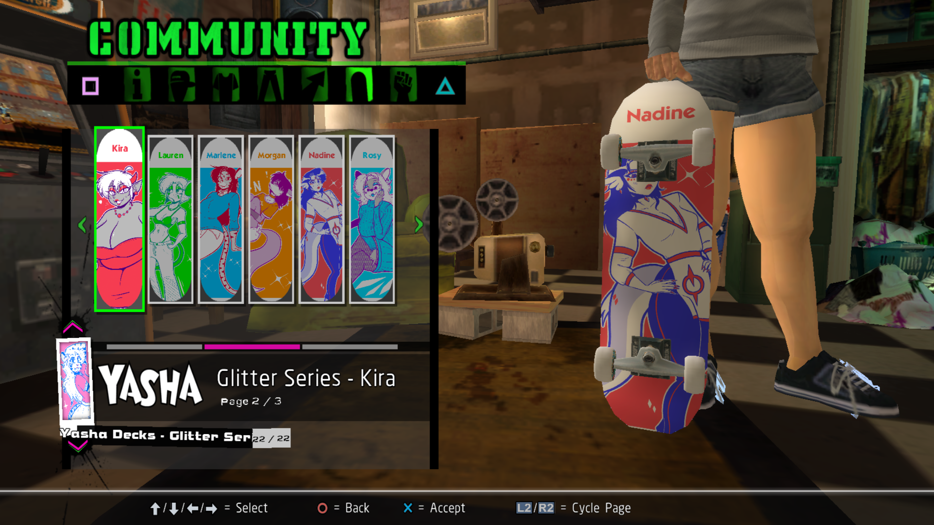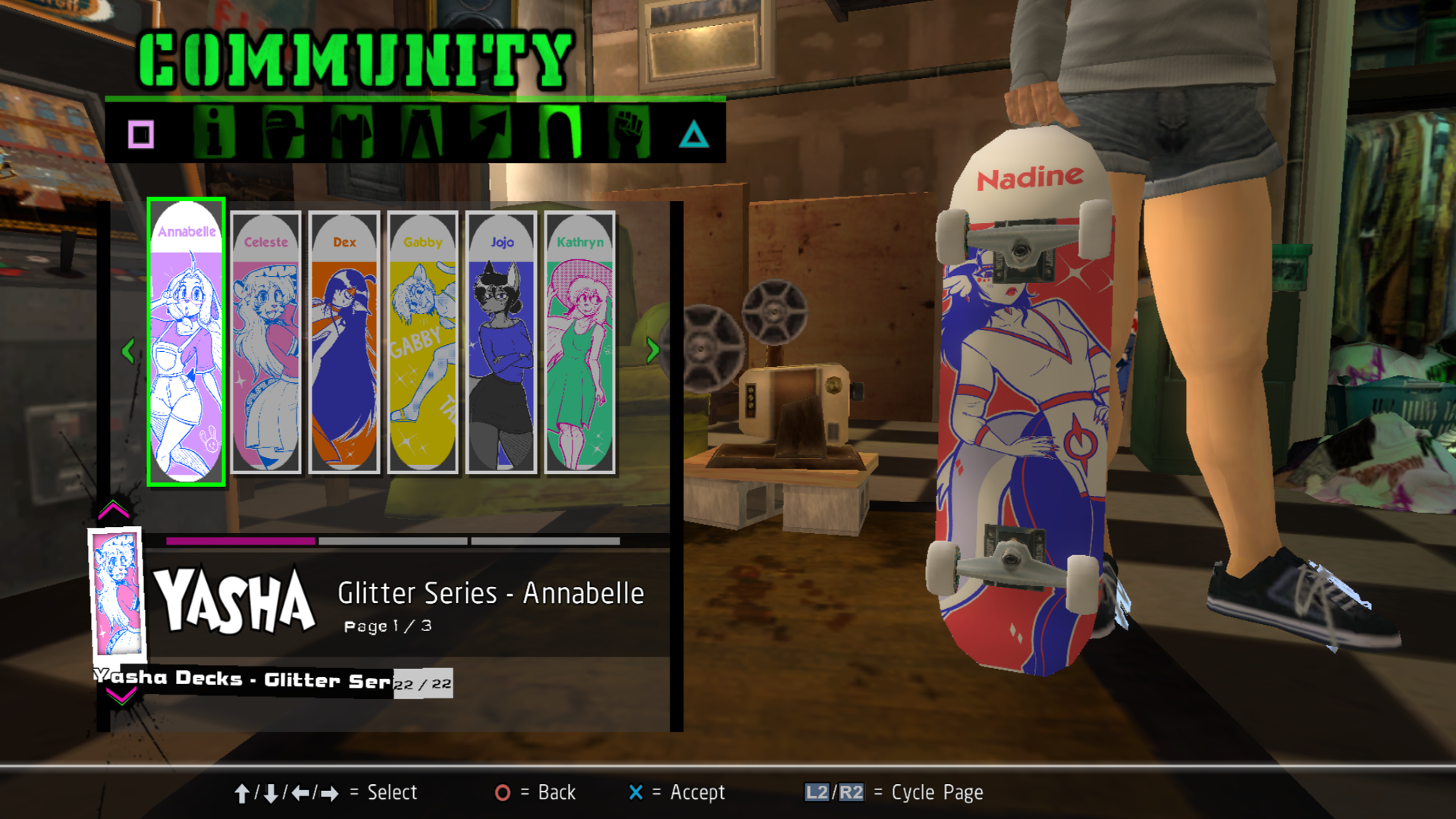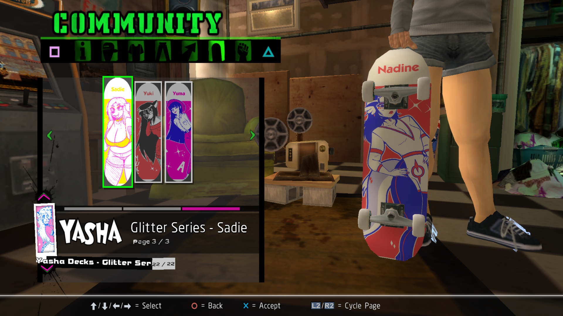 Installed items will show in the Deck Graphic category of the Create-a-Skater menu.