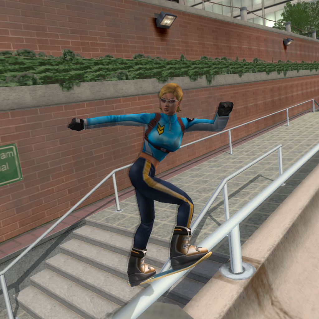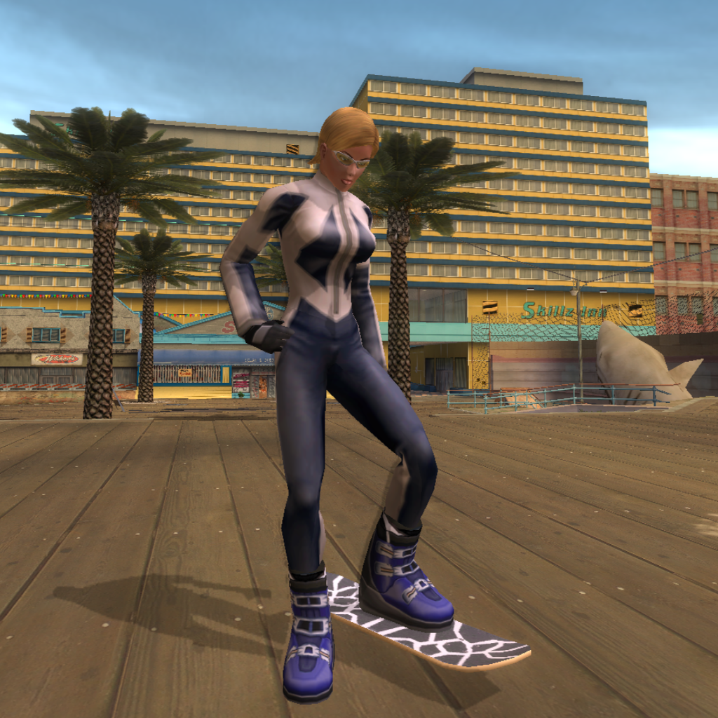 Here is the classic snowboarder Elise Riggs from 2001's SSX Tricky, including all of her outfit variations, a makeshift 'snowskate' board, and a voicepack.