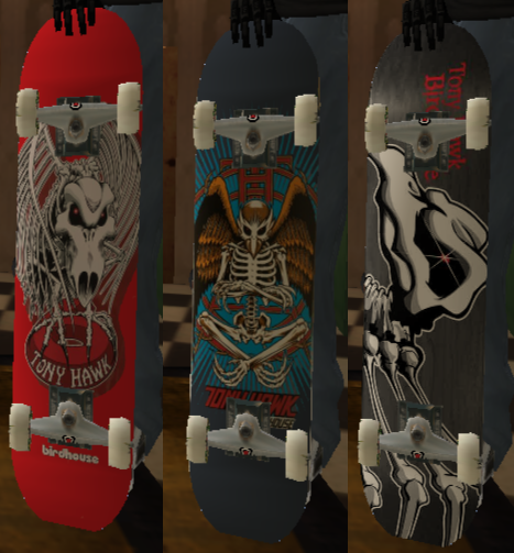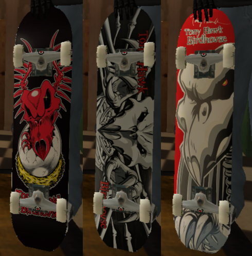 SIX OF THE CLASSIC BIRDHOUSE TONY HAWK'S FALCON DECKS, NOT SURE IF ALL OR SOME OF THIS DECKS ARE ALREADY IN THE GAME, DIDN'T CARE ANYWAYS, MAYBE I WILL DO MORE CLASSICS BIRDHOUSE DECKS IN THE FUTURE.