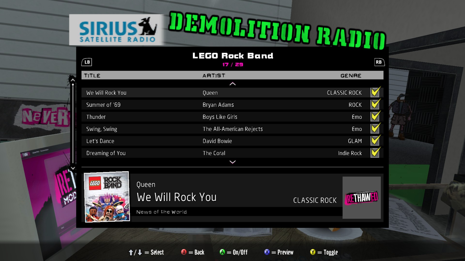 Journey back to the magical time of 2009 and re-experience the iconic songs from LEGO Rock Band! 45 songs spanning decades of rock history from Queen and Europe to Sum 41 and Blink-182! This unique set list is now availble for you to shred and grind to in ReTHAWed!