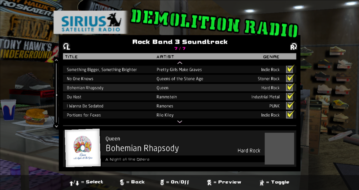 Installed soundtracks will appear in the Demolition Radio menu of the Music Options menu.