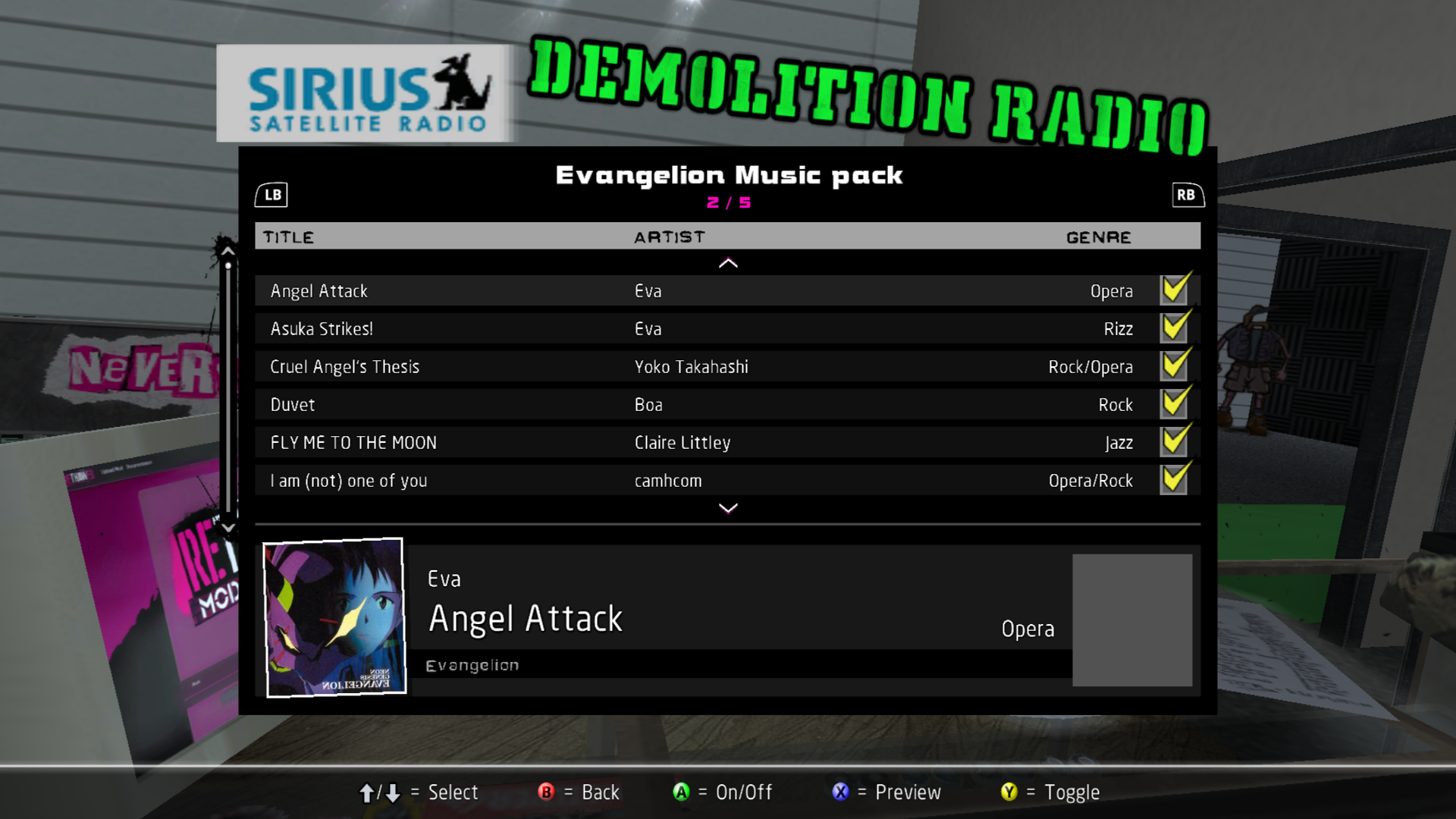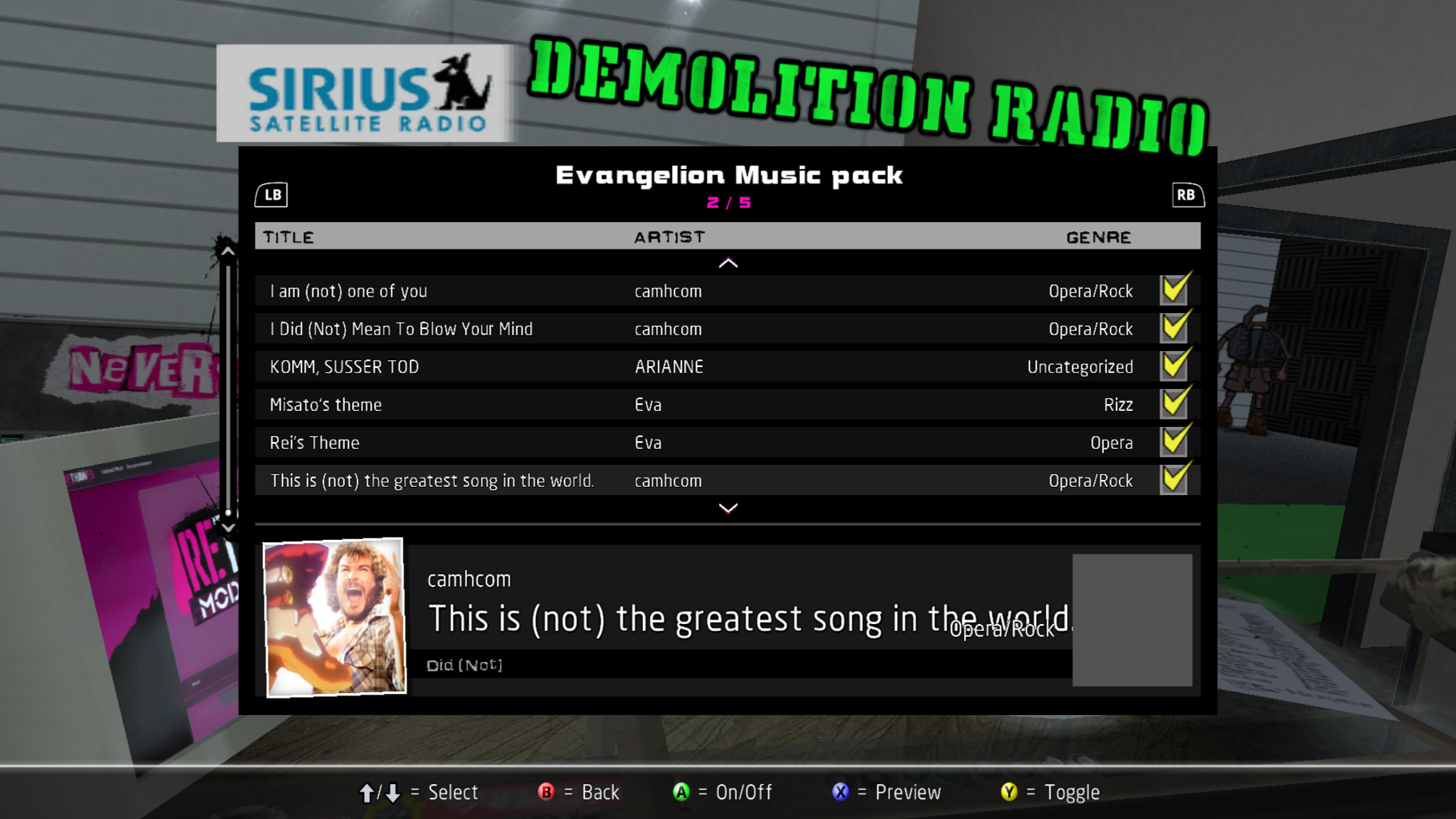 Installed soundtracks will appear in the Demolition Radio menu of the Music Options menu.