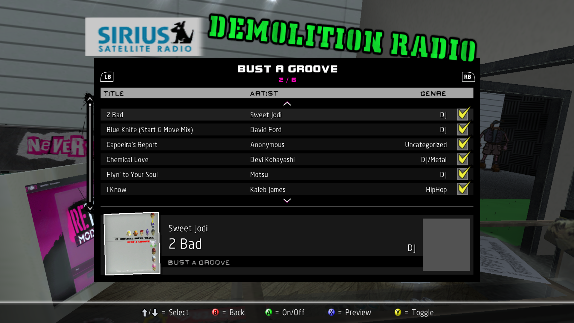 Installed soundtracks will appear in the Demolition Radio menu of the Music Options menu.