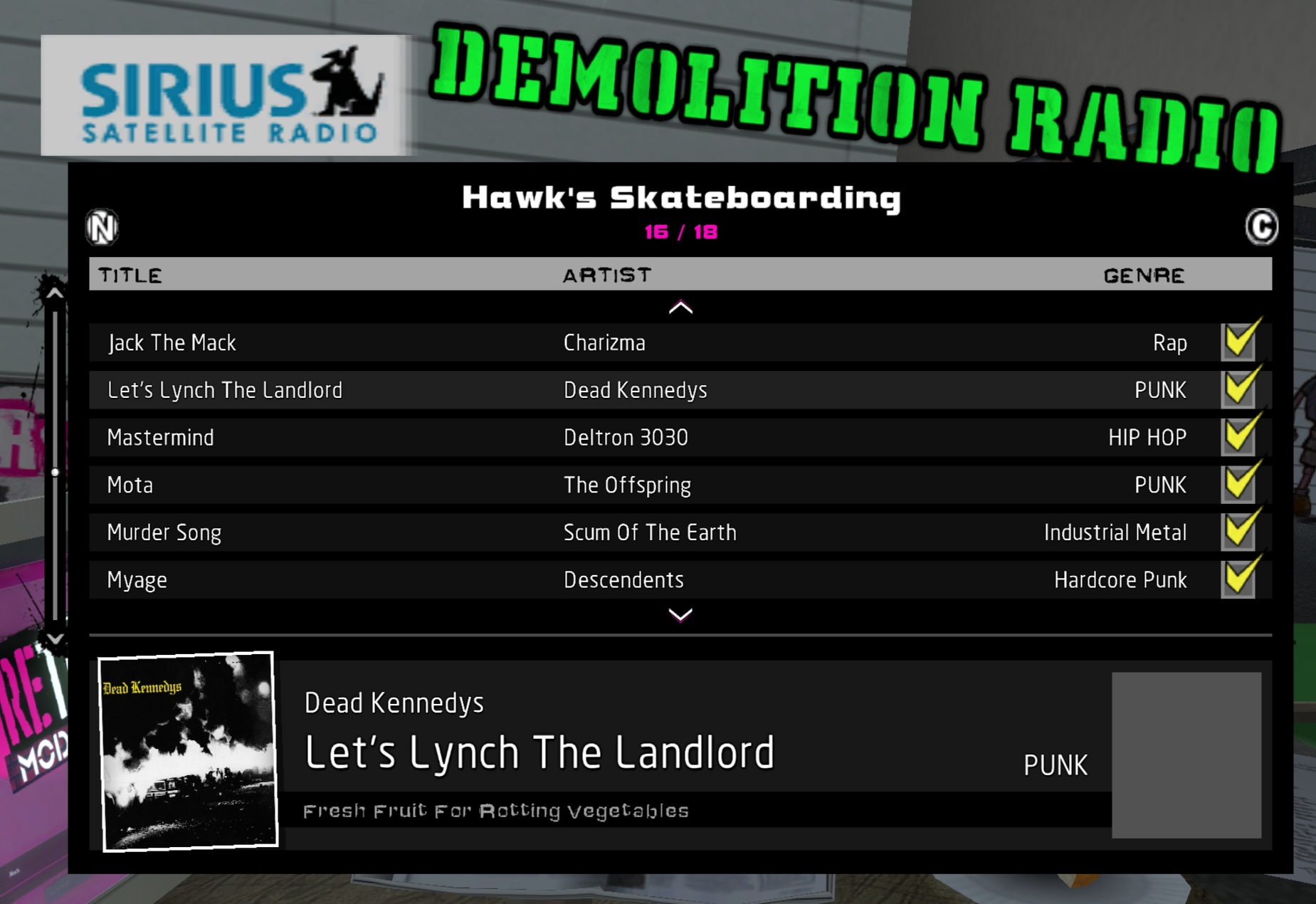 Installed soundtracks will appear in the Demolition Radio menu of the Music Options menu.