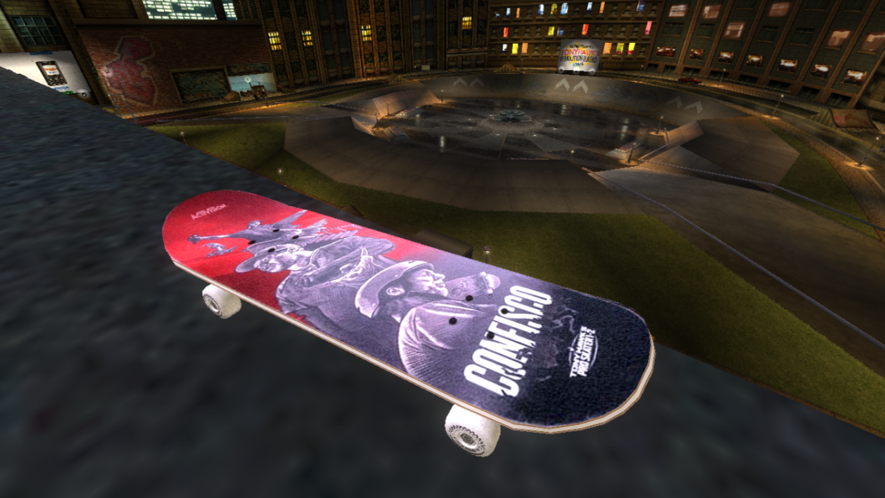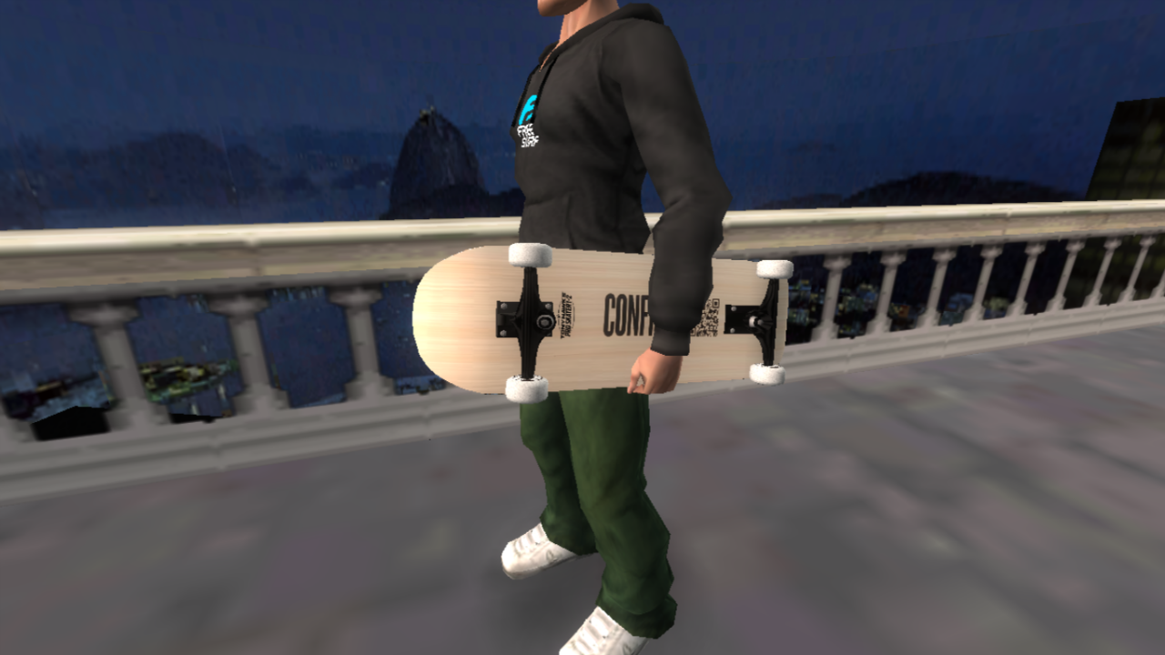(EN) Deck, grip and wheel graphics of the limited edition board made to celebrate the release of THPS1+2 in Brazil.