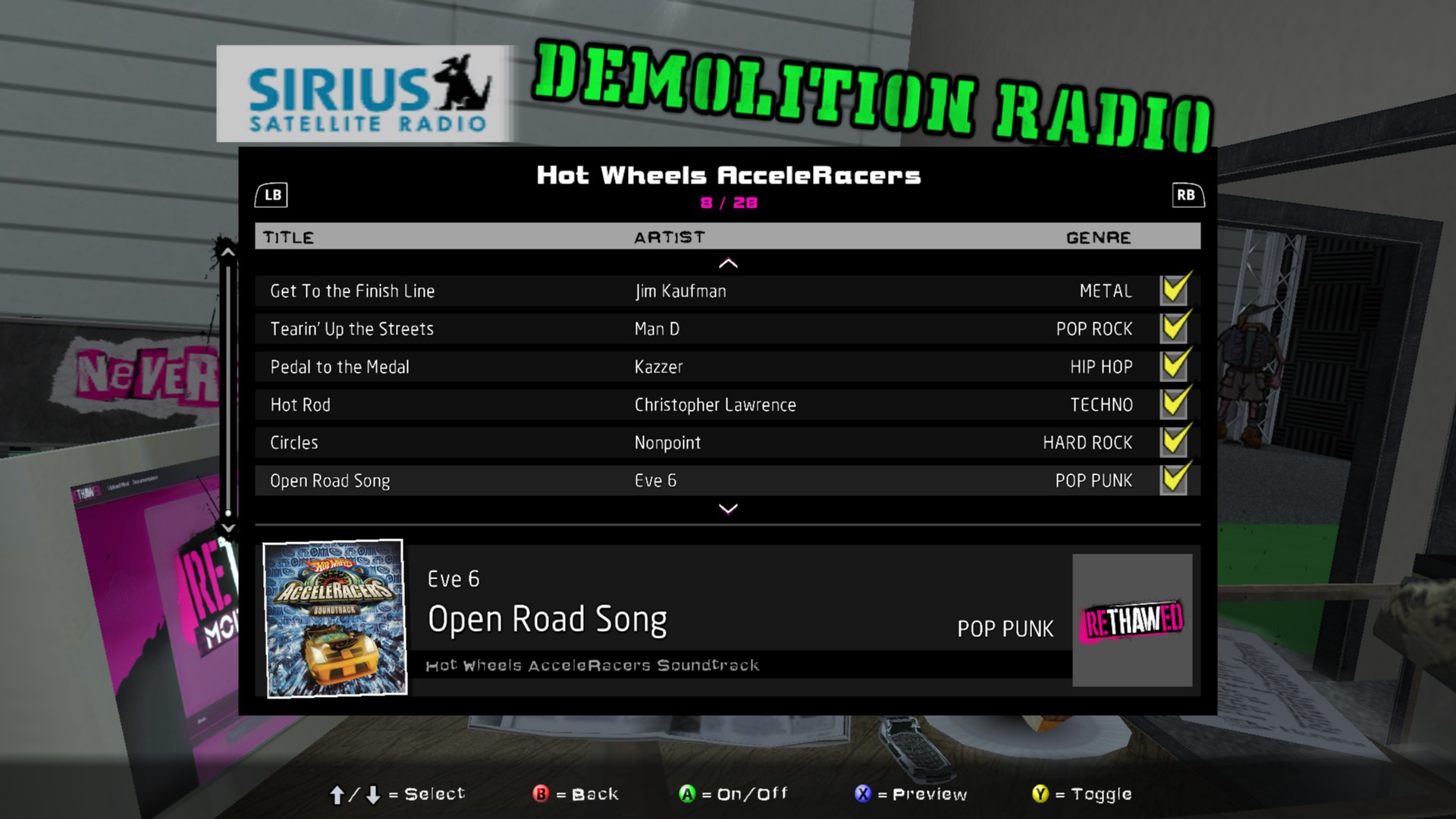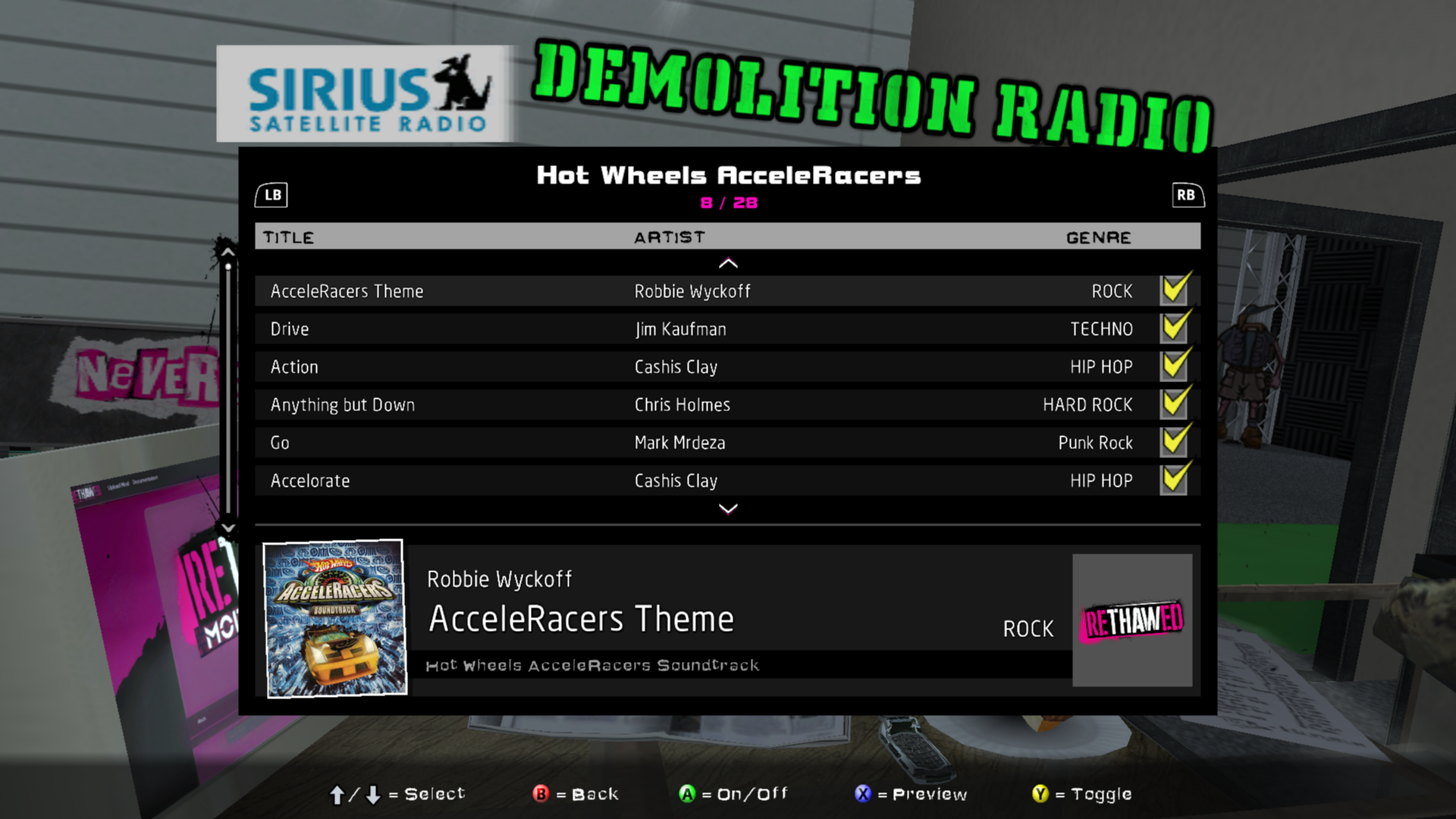 Installed soundtracks will appear in the Demolition Radio menu of the Music Options menu.