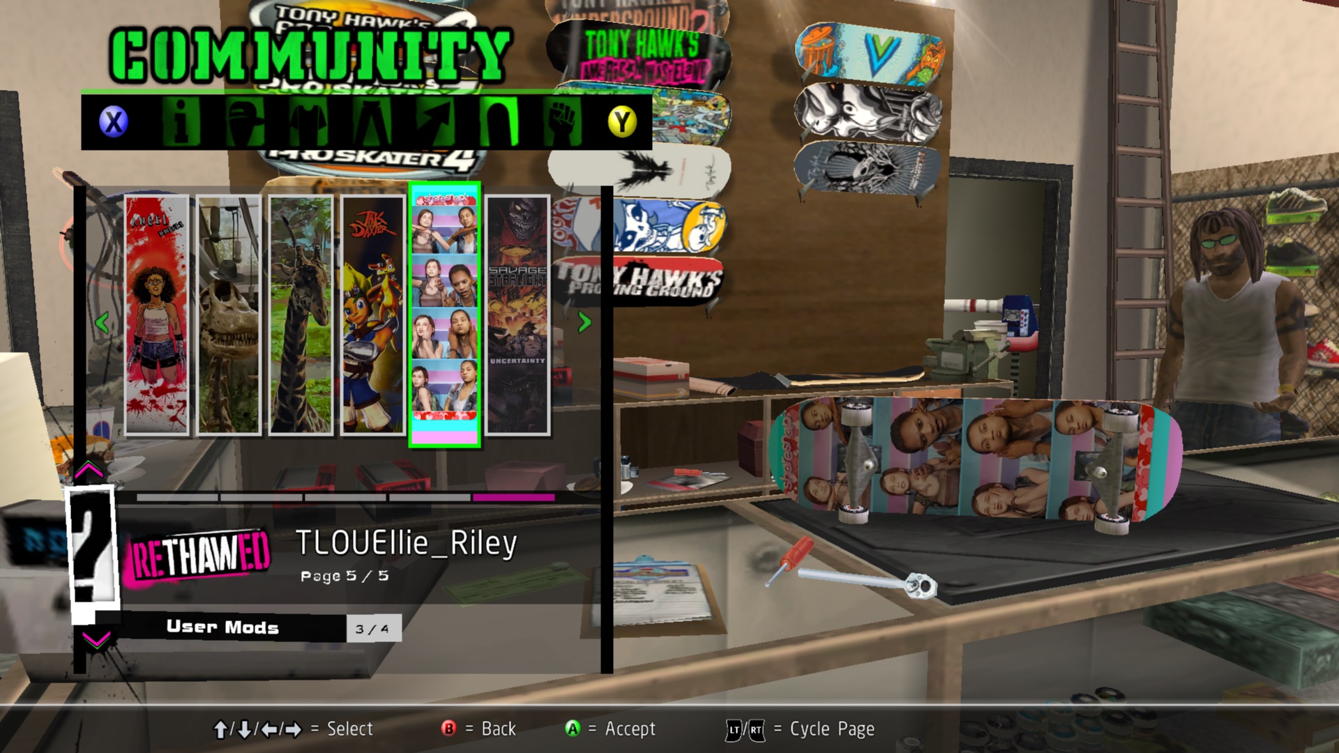 IMPORTANT: Keep "Ellie Williams" folder inside her skater folder. This ensures the voice pack works. Move the folders for DeckGraphics, Stickers and Tags into their proper mods locations for everything to work properly.