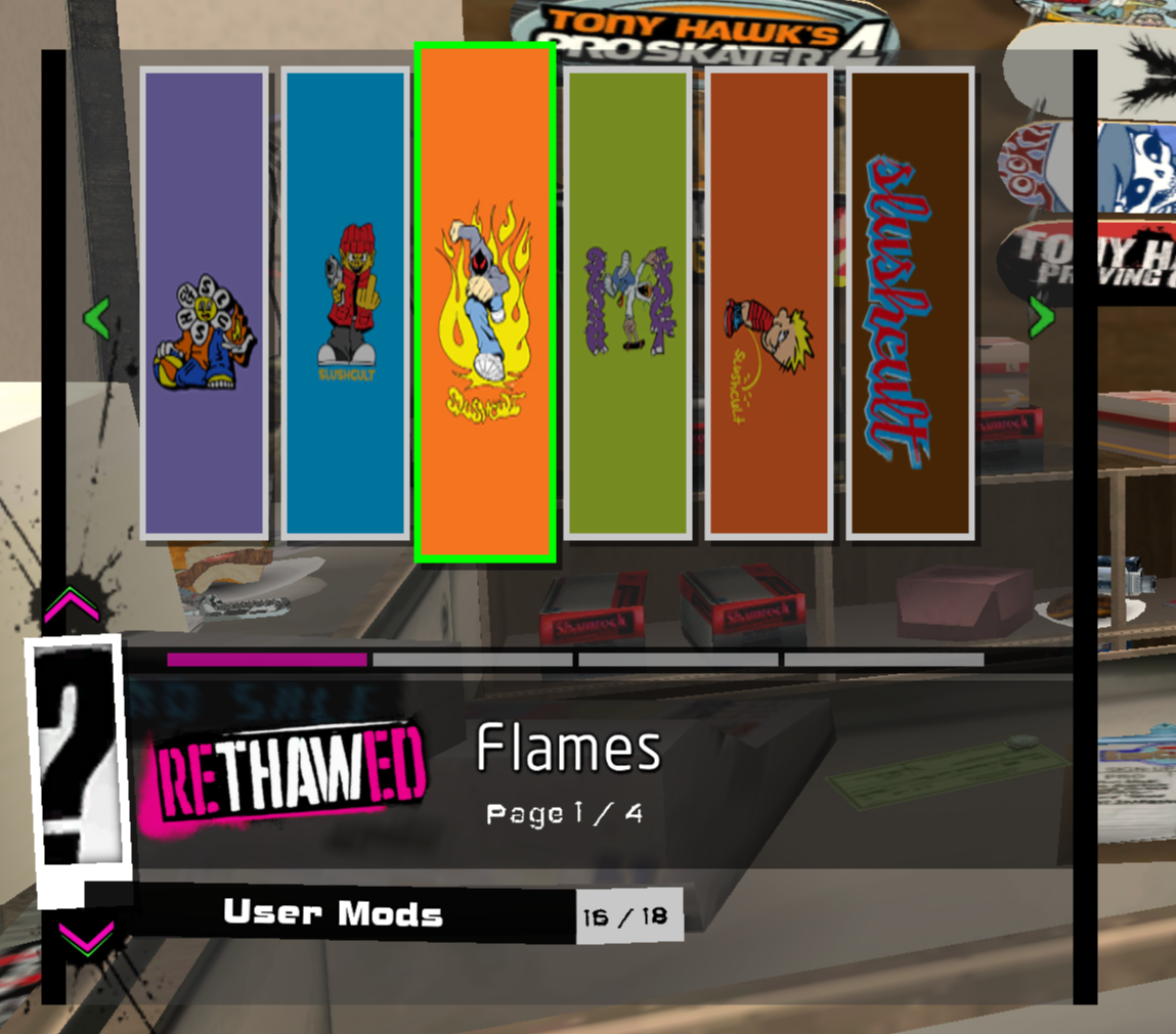 Installed items will show in the Deck Graphic category of the Create-a-Skater menu.
