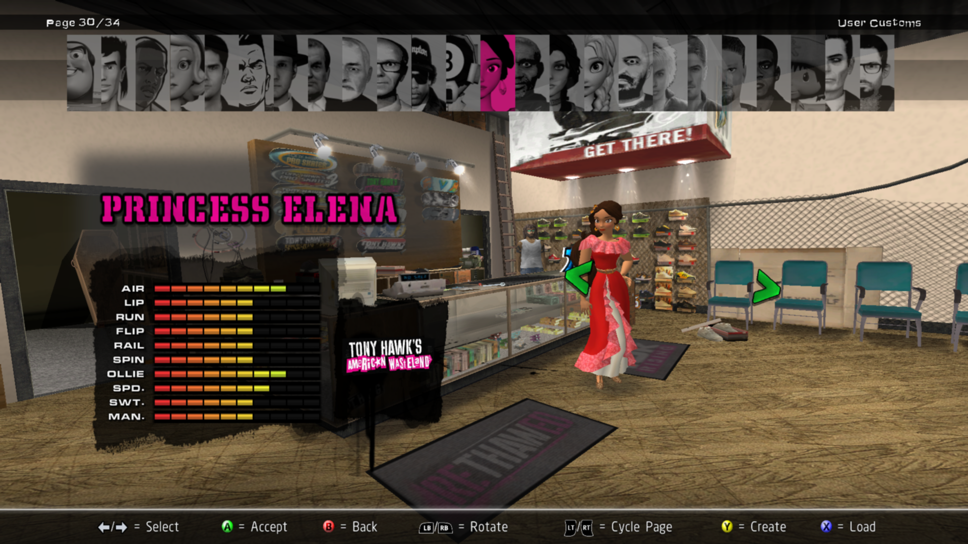 Princess Elena has the heart and mind of a true leader. She is devoted to the welfare of her subjects, her family, and her friends, and most of all, her devotion to the fine art of skateboarding. At some point during her reign she built an expansive skate park dedicated to her late parents.