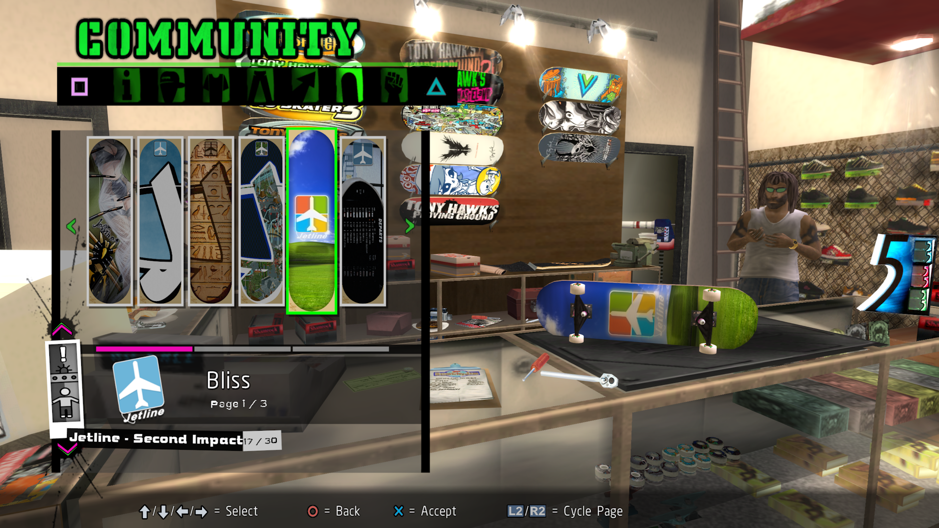 Installed items will show in the Deck Graphic category of the Create-a-Skater menu.