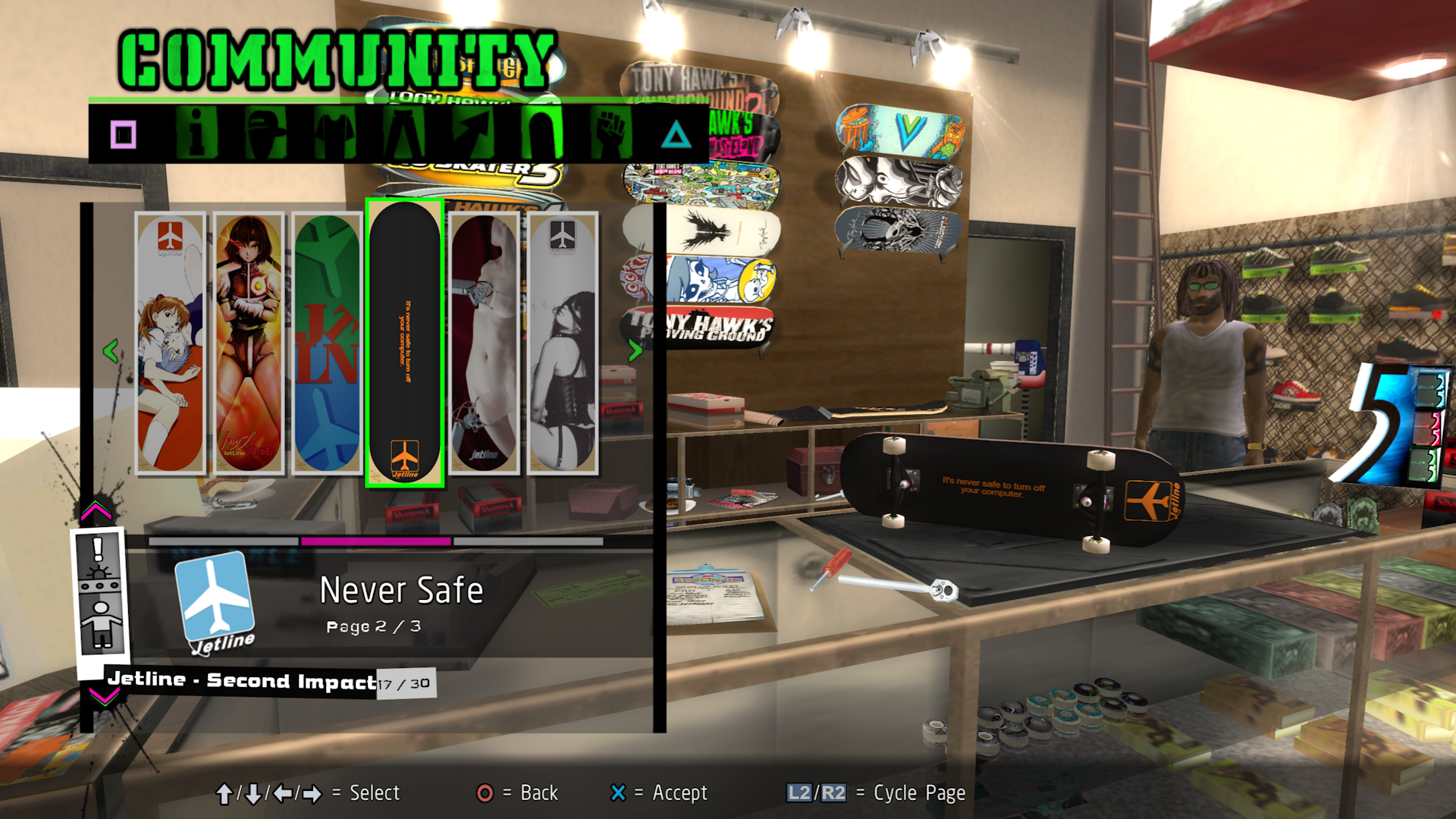 Deck graphics are only selectable on boards that support them.