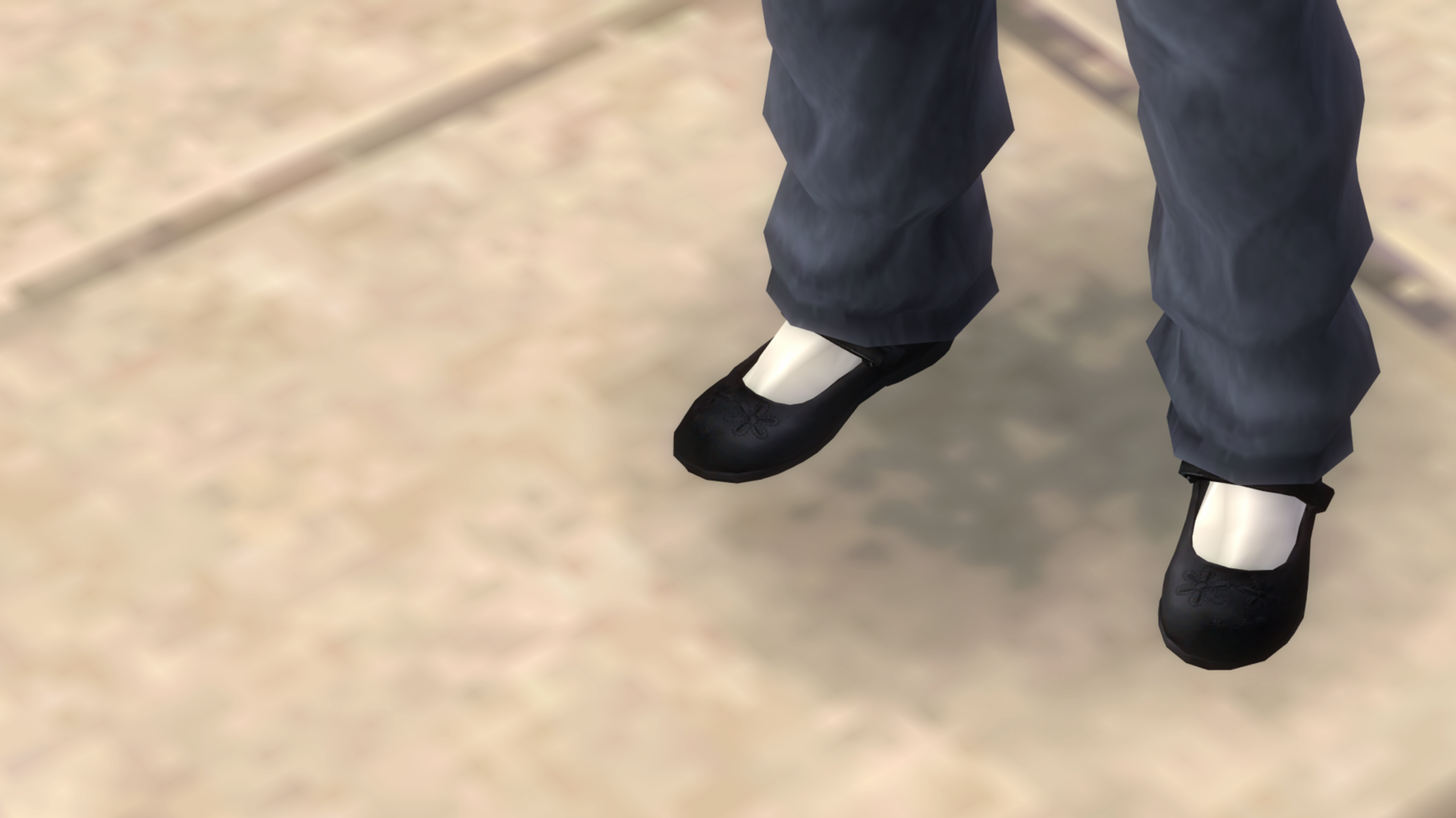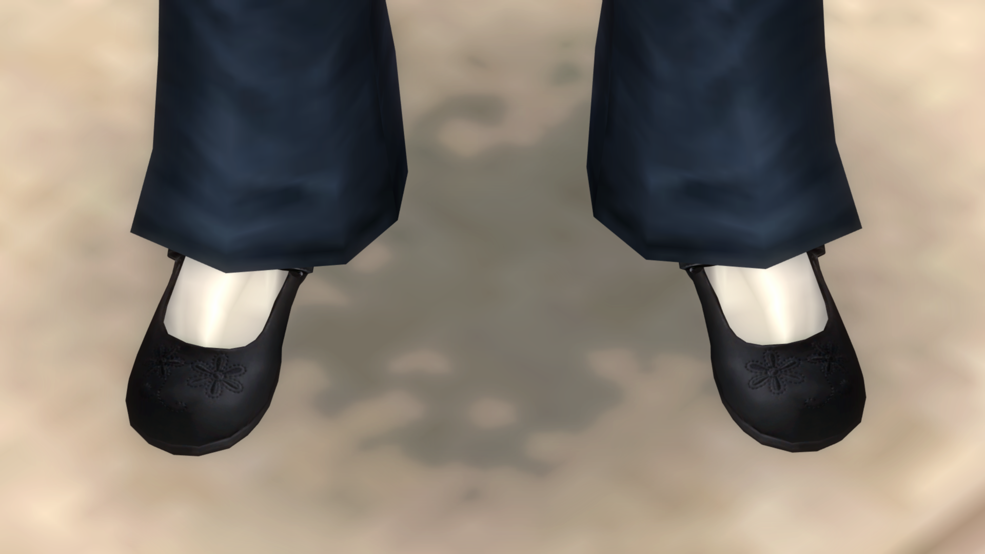 Due to CAS limitations, the shoes come with ankle socks built in especially for female characters. Those playing as a male character may have to tweak the shoe colour if they're wearing socks.
