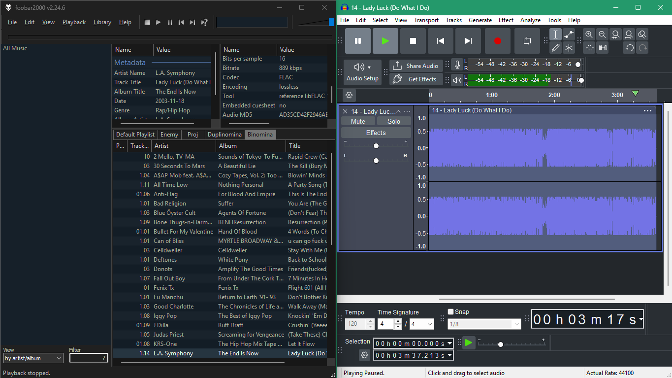 Finally, for once I was able to get all of a playlist's songs from Soulseek without relying on a YT video converter! All songs were retrieved in 16-bit/44.1 kHz FLAC format, de-amplified to 4 dB higher than their ReplayGain value, and binked the exported WAVs with RADTools v0.8i. GHSDK was also used to convert the album covers from 512x512 PNGs to .img.wpc, yet this soundtrack mod marks the first time no album cover was converted into a 257 MB .img.wpc. Lucky me, I guess.