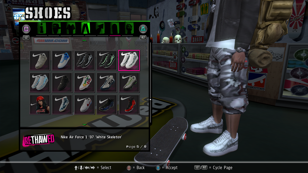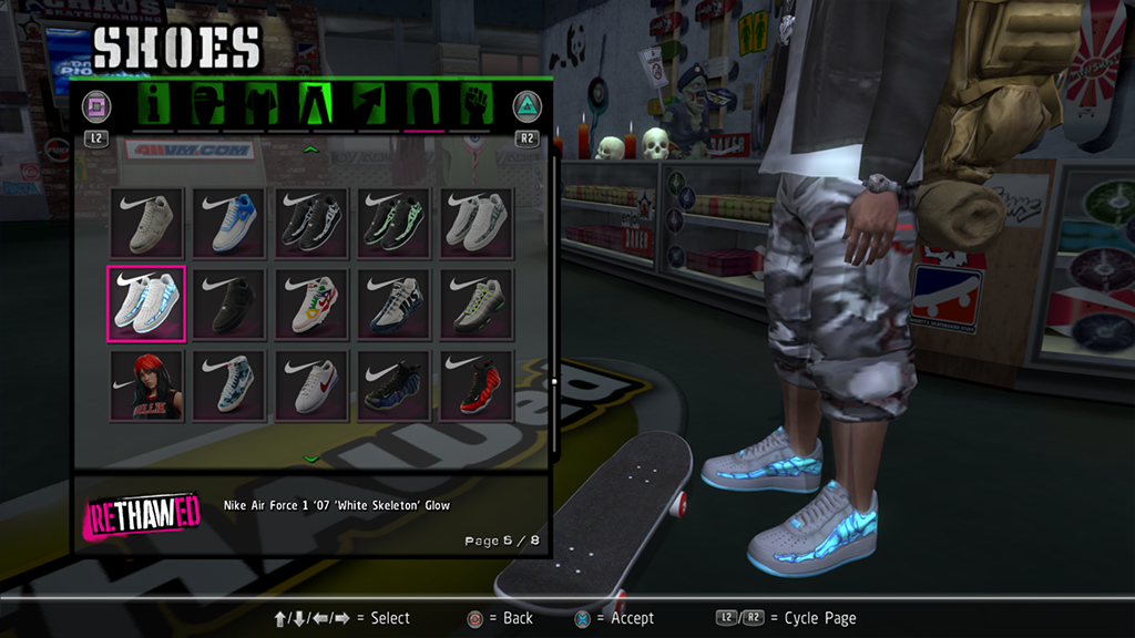 Installed items will show in the appropriate category of the Create-a-Skater menu.