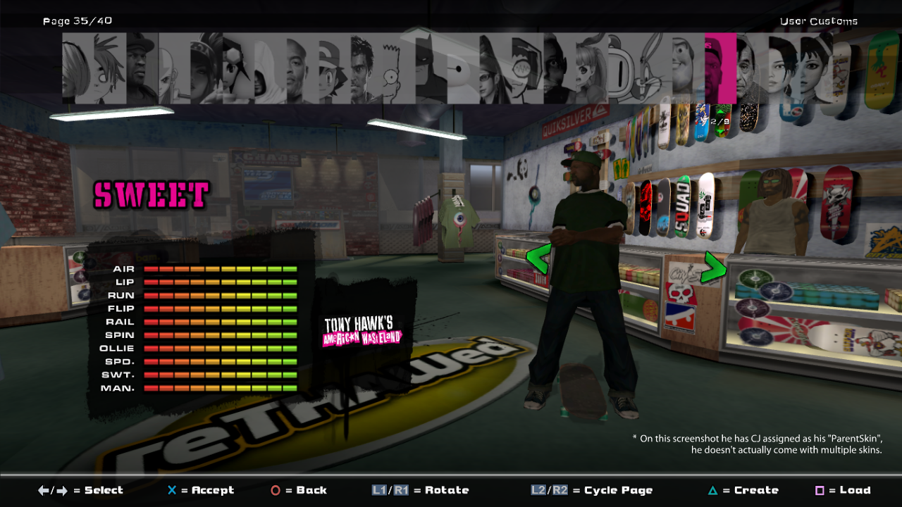 Uses LordSkill's Sweet mod for THUG Pro, converted for reTHAWed using SceneConverter.