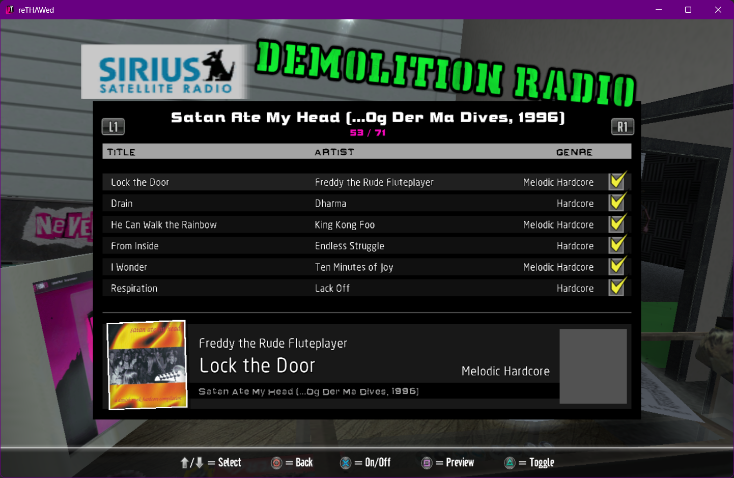 Installed soundtracks will appear in the Demolition Radio menu of the Music Options menu.