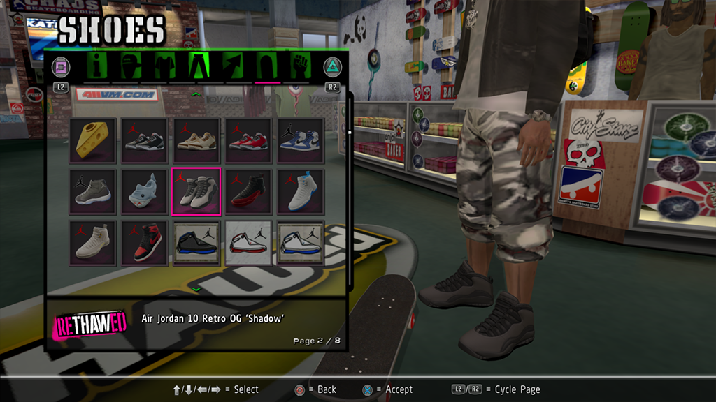 Installed items will show in the appropriate category of the Create-a-Skater menu.