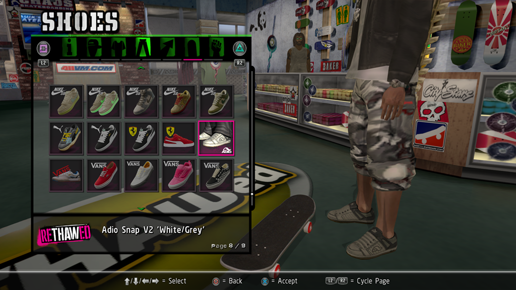 Installed items will show in the appropriate category of the Create-a-Skater menu.