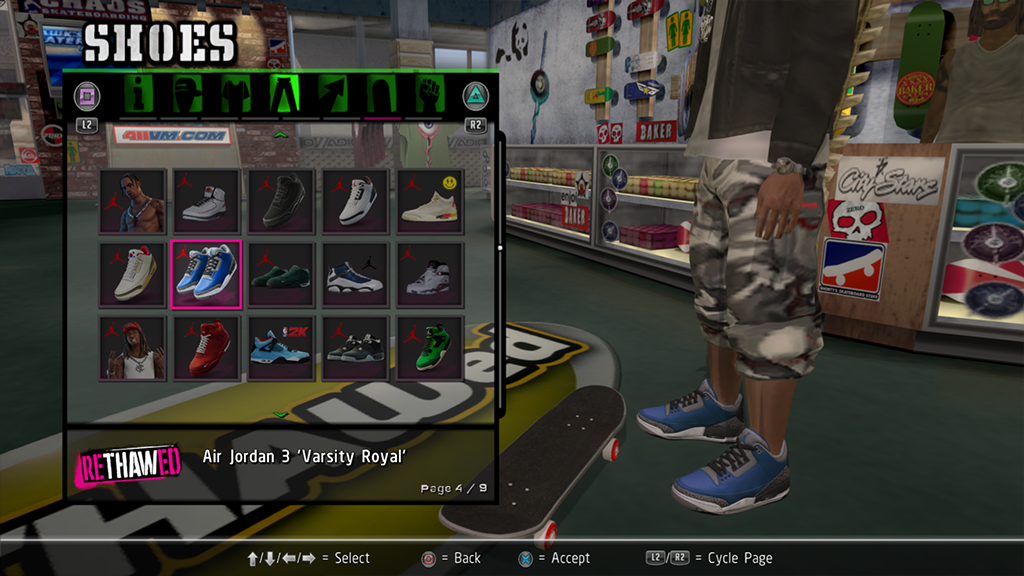 Installed items will show in the appropriate category of the Create-a-Skater menu.