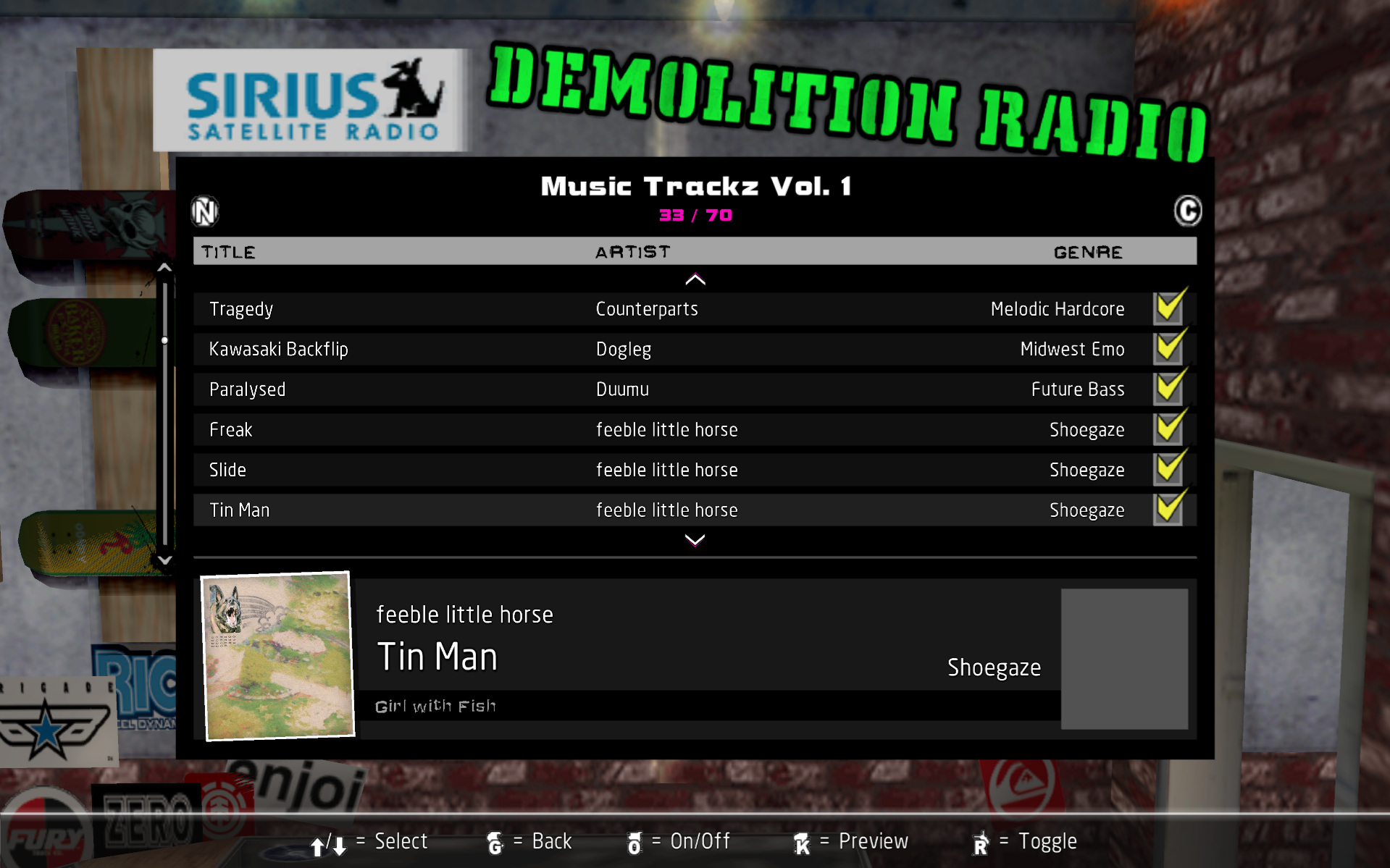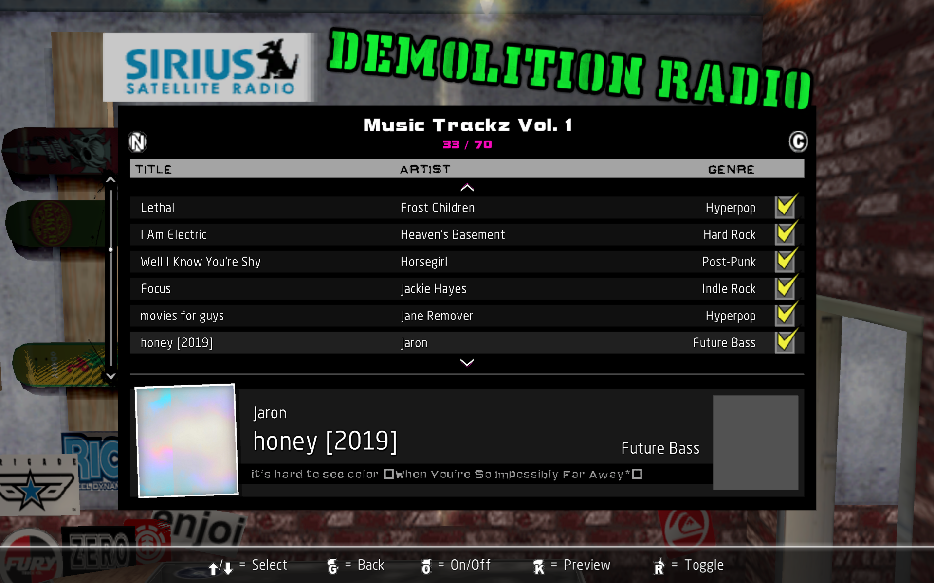 Installed soundtracks will appear in the Demolition Radio menu of the Music Options menu.
