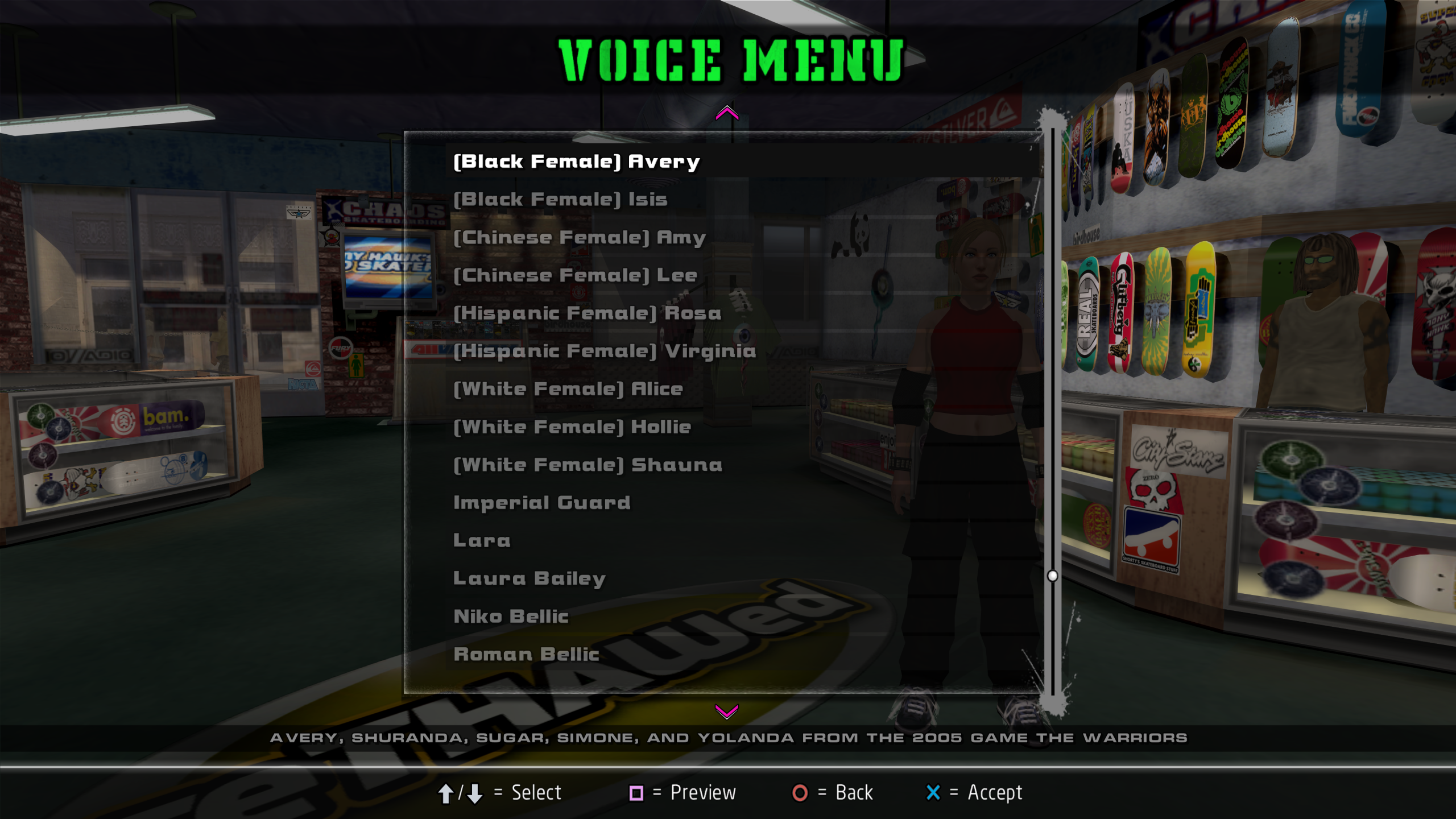 Each voice is labeled in the voice menu as: ([Race] Female) - [Name]. This ensures they are grouped together alphabetically and won't clutter your existing voices.