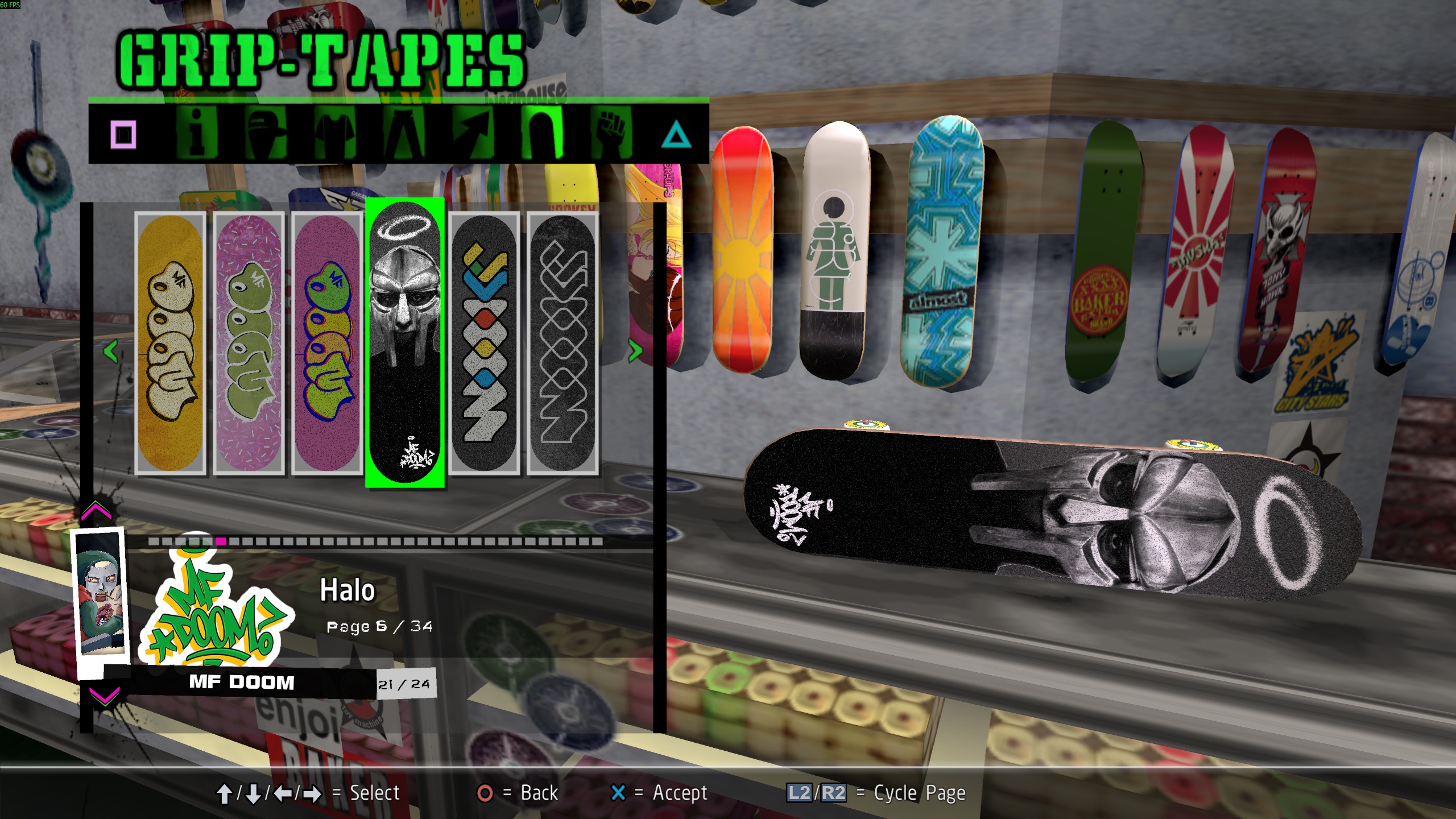 Installed items will show in the Deck Graphic category of the Create-a-Skater menu.