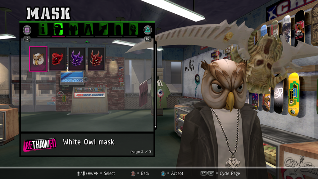 Installed items will show in the appropriate category of the Create-a-Skater menu.