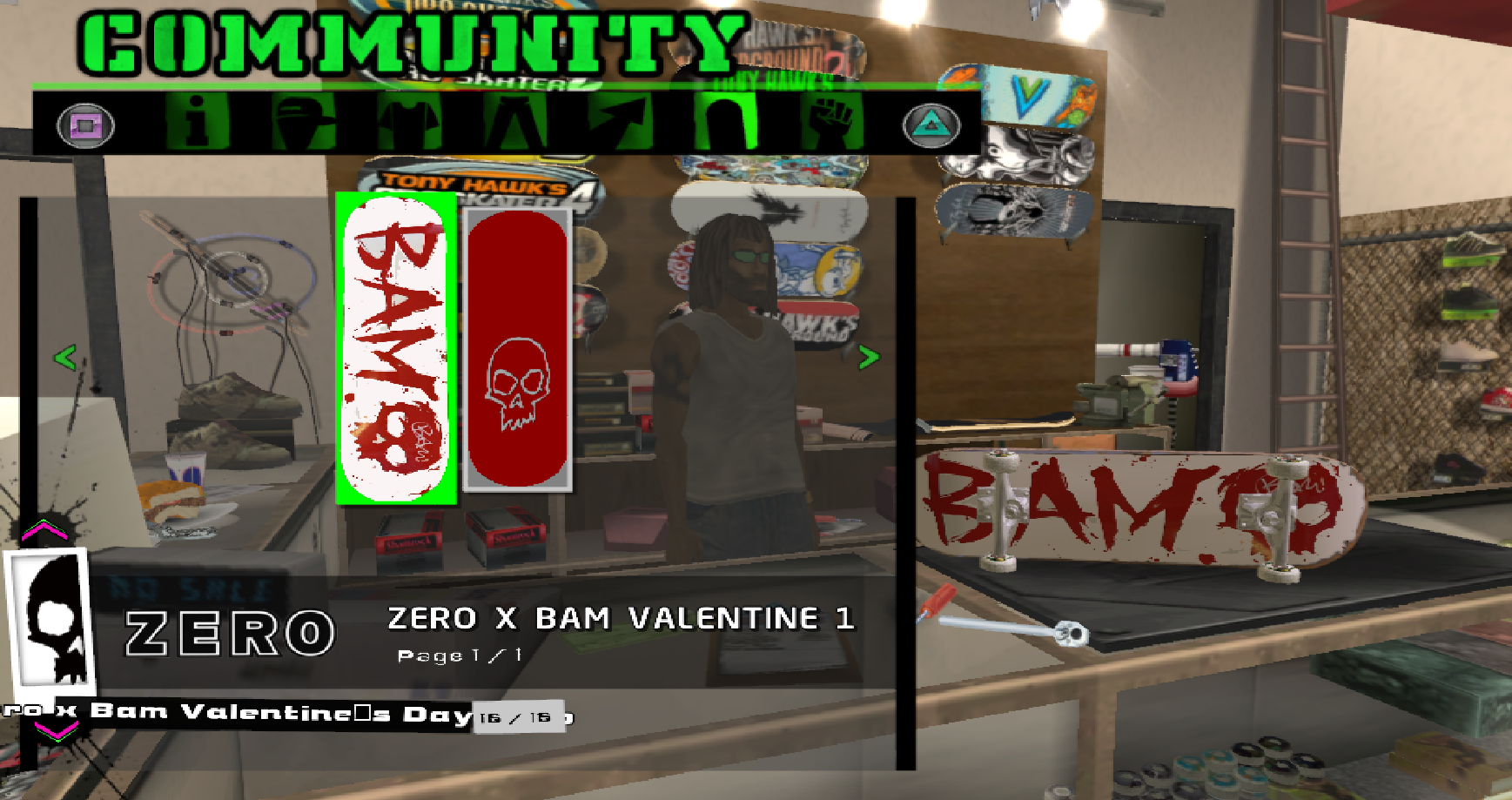 Installed items will show in the Deck Graphic category of the Create-a-Skater menu.