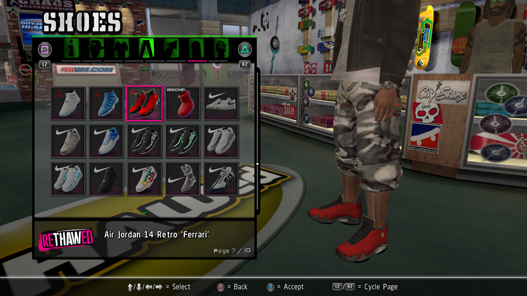 Installed items will show in the appropriate category of the Create-a-Skater menu.