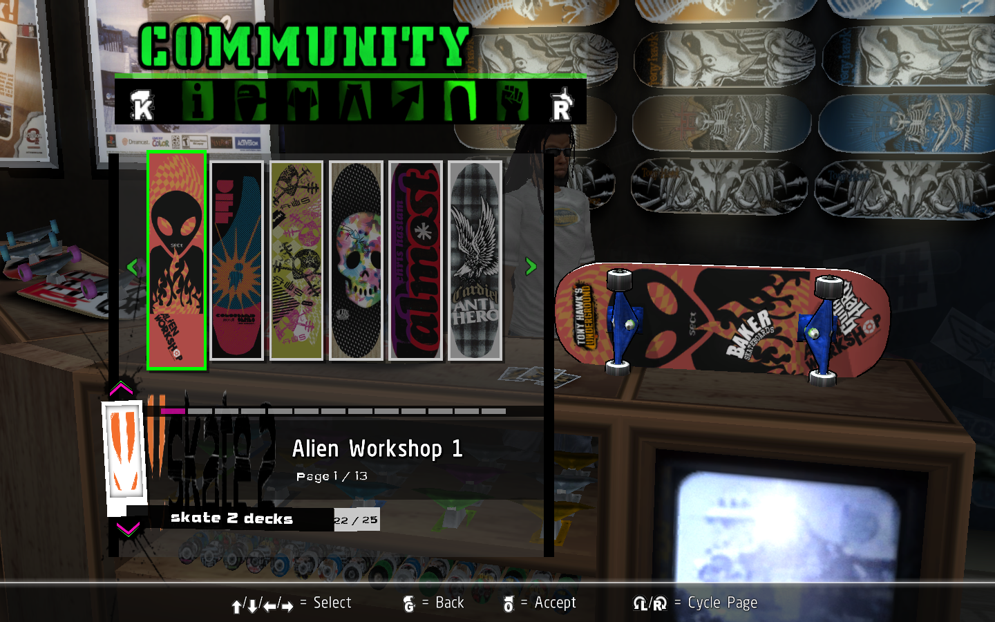 all the decks from skate 2 fix: i had to rename the files because some decks were overwriting the skate 1 decks, for the people that downloaded before the fix please redownload the pack!