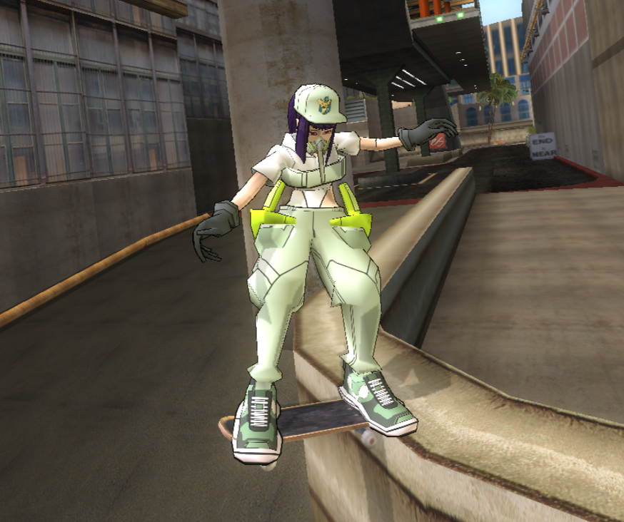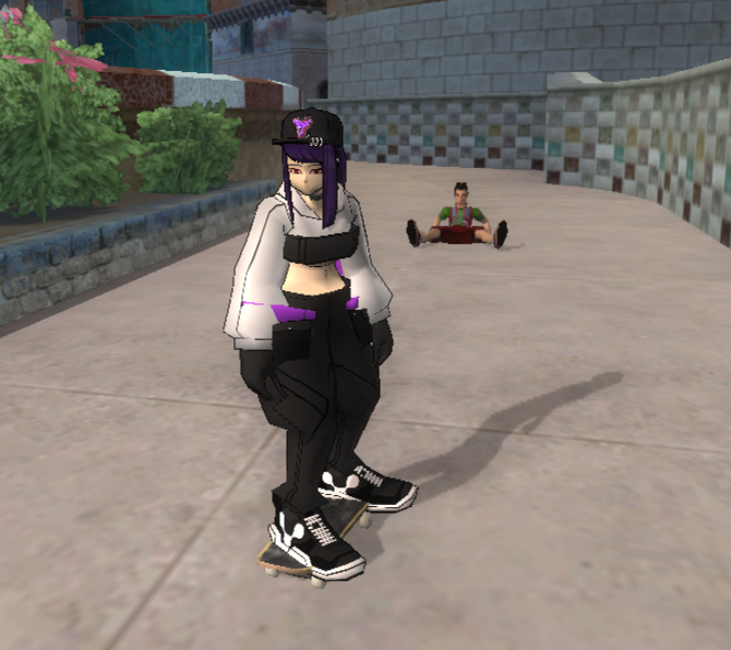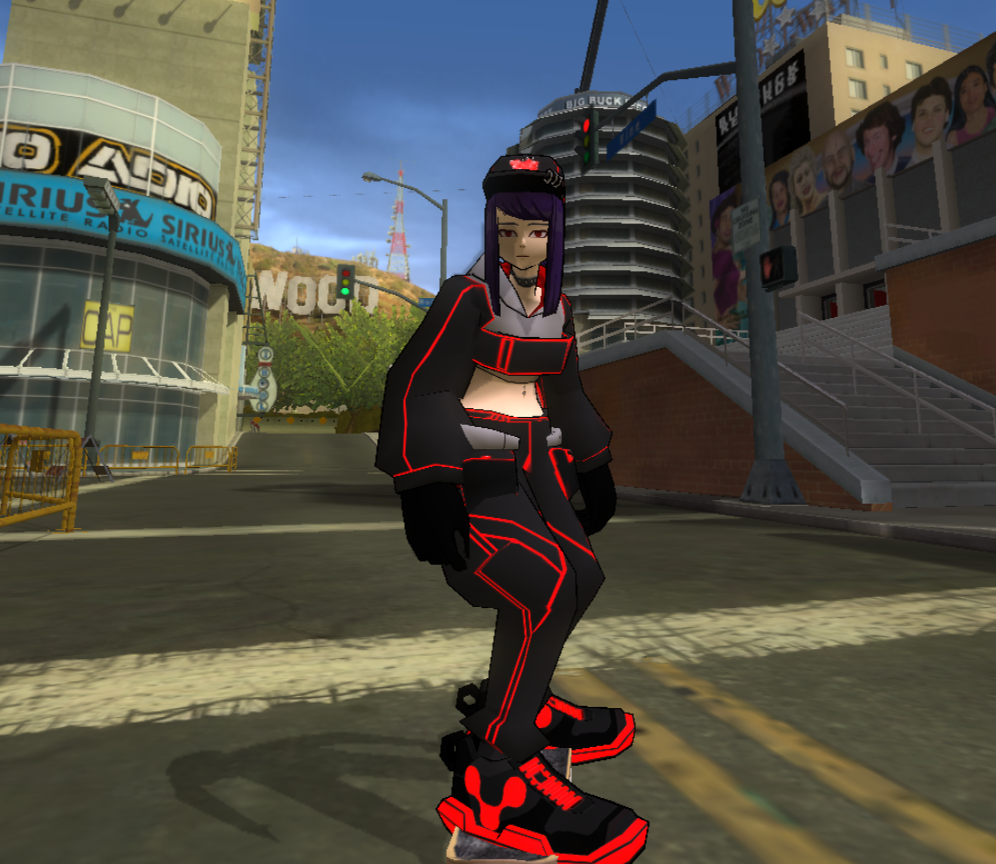 This character is originally from VA-11 Hall-A. Model was created by myself as a mod for Bomb Rush Cyberfunk with the outfits borrowing from the Futurism crew from that game.