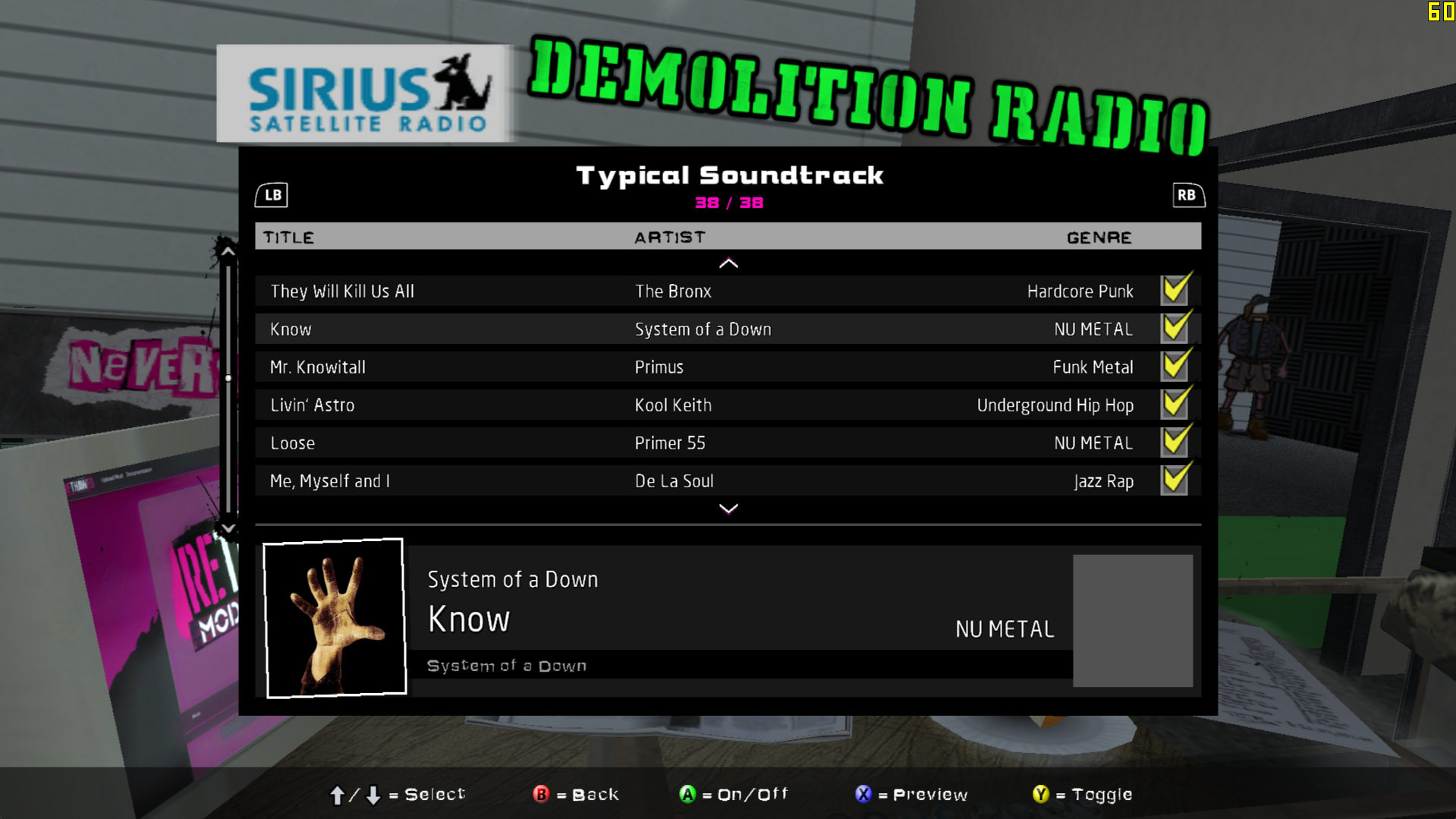 Installed soundtracks will appear in the Demolition Radio menu of the Music Options menu.