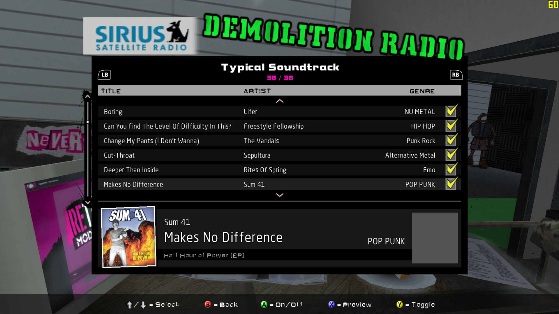 Let me introduce you to this music pack! "Typical Soundtrack" is a music pack, that contains 50 awesome songs, that fits really well with any Tony Hawk game. This soundtrack ranges from Hip-Hop to Metal, Nu Metal & Rap Metal to Punk Rock, Hardcore Punk, Pop Punk & Emo. It also includes beta songs from some Tony Hawk games: THPS3, THUG1, THUG2 & THAW.