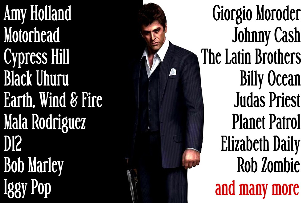 All 109 licensed songs from SCARFACE: The World Is Yours.