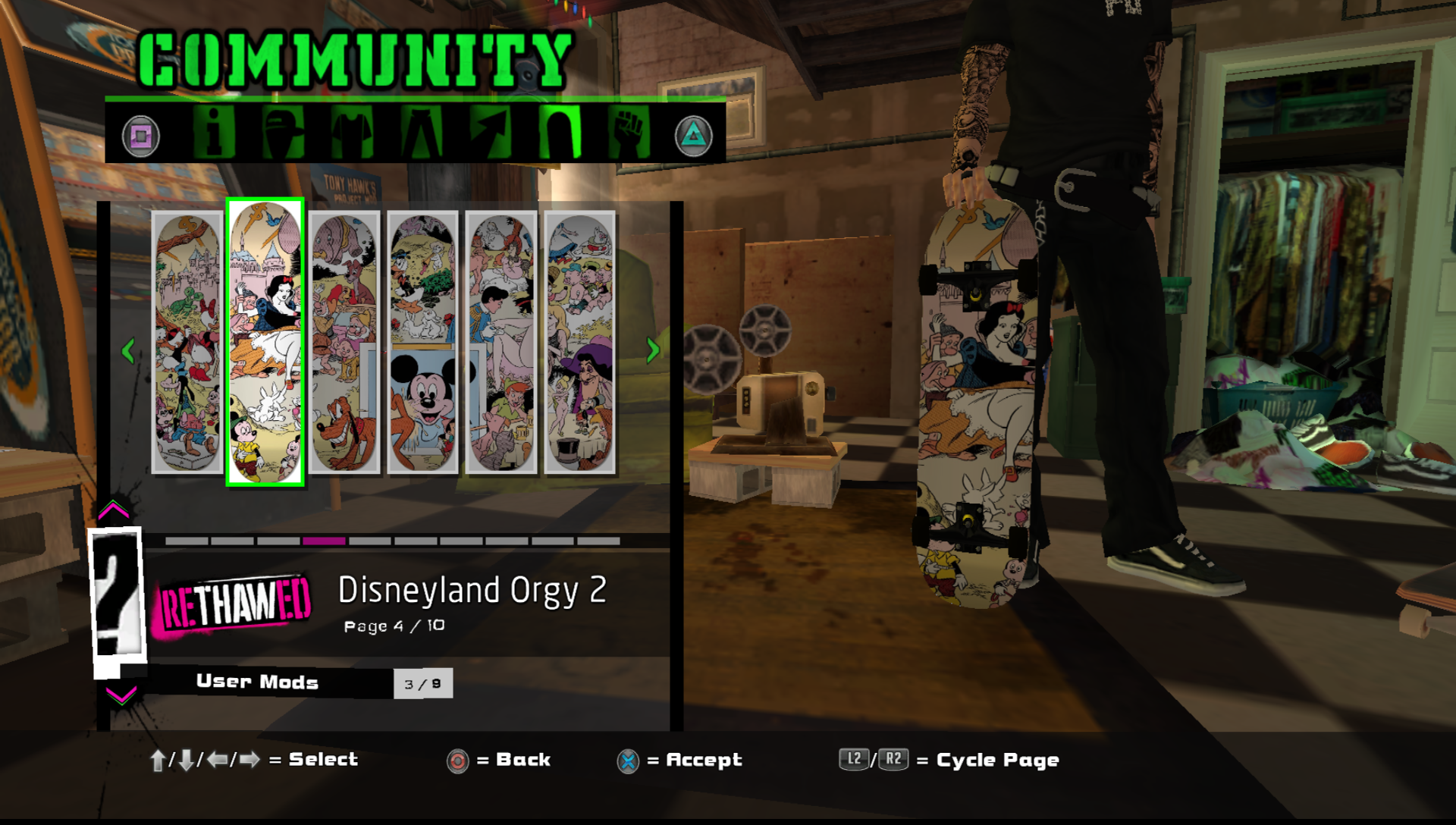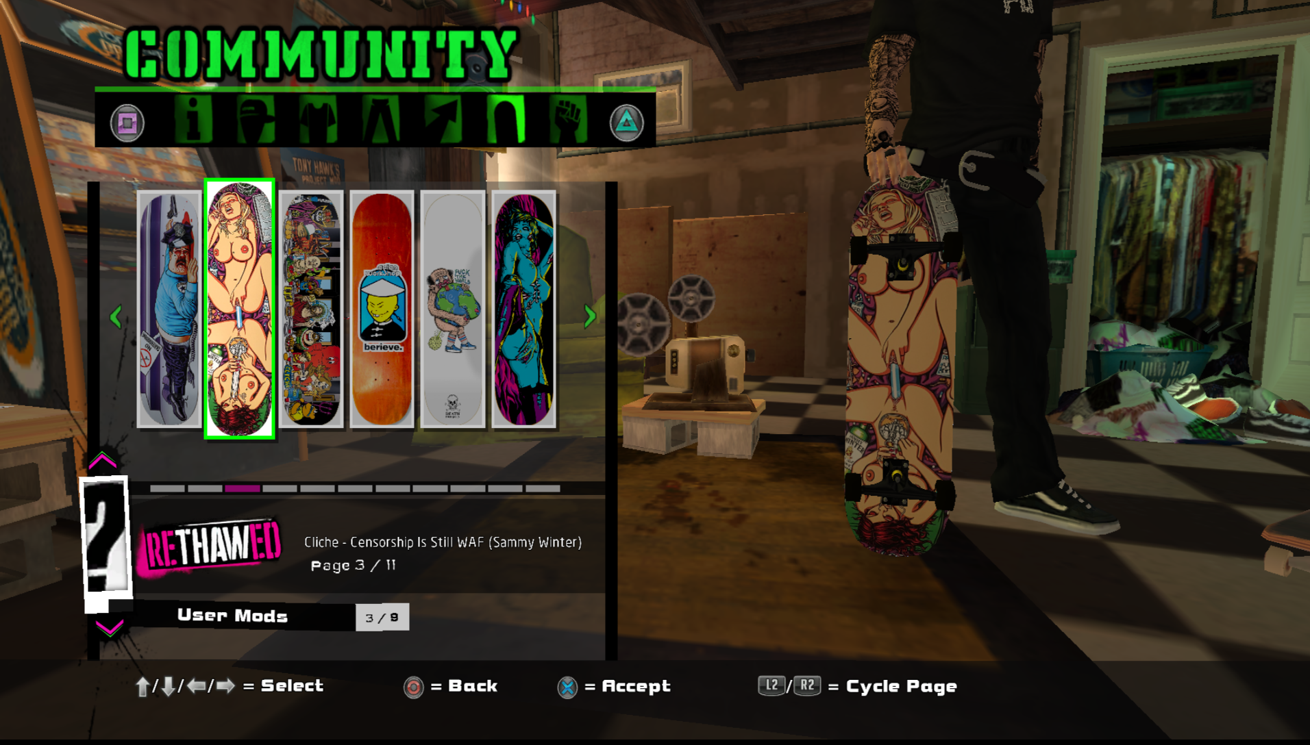 Installed items will show in the Deck Graphic category of the Create-a-Skater menu.