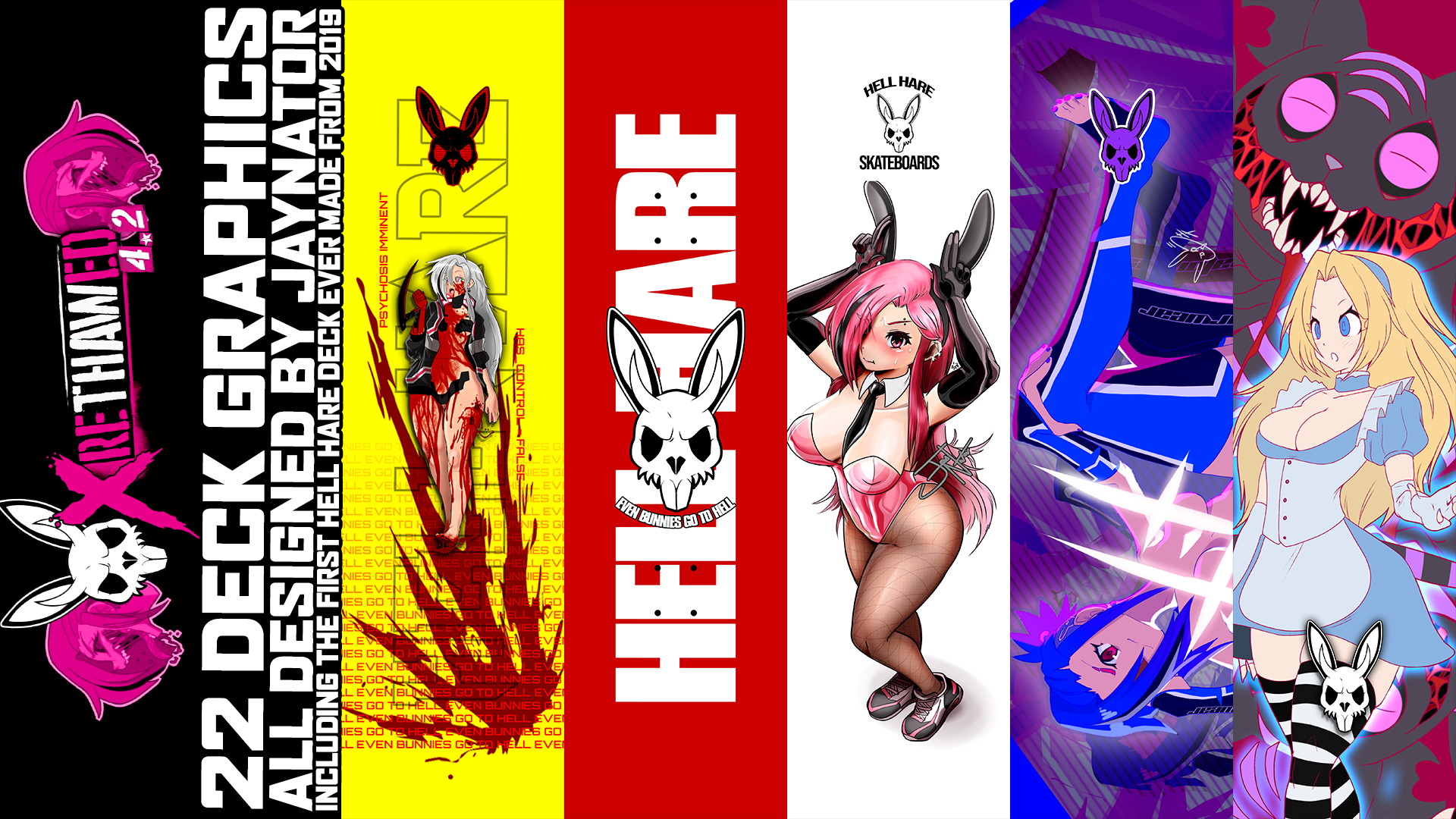 22 Deck Graphics by Hell Hare Skateboards, Designed by Artist, JayNator, Featuring: