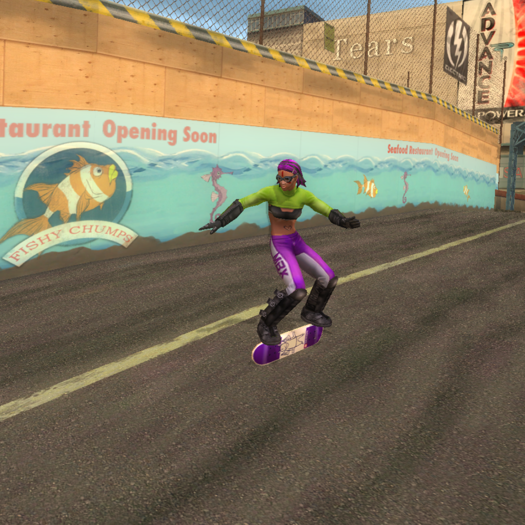 Here is the classic snowboarder Zoe Payne from 2001's SSX Tricky, including all of her outfit variations, a makeshift 'snowskate' board, and a voicepack.