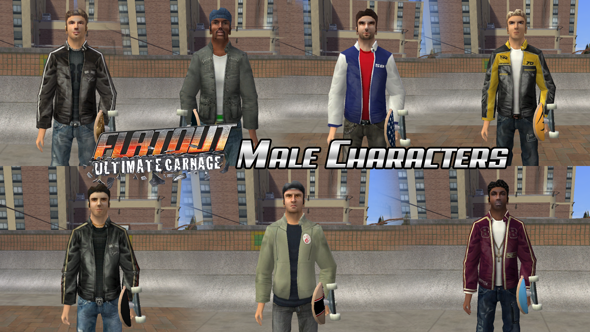 Here's a complete pack of characters from FlatOut 2, which includes both male and female drivers as well as matching skate deck and griptape graphics.